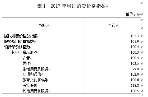全年居民消费价格比上年上涨2.3%,其中食品烟酒价格上涨0.3%。