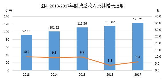 全年财政总收入123.21亿元,比上年增长6.4%;一般公共预算收入86.70亿元,下降2.3%。在财政总收入中:税收收入91.07亿元,增长7.2%,税收收入占比73.9%。