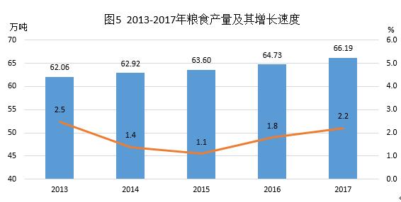 全年肉类总产量62751吨,比上年增长7.3%。其中,猪肉产量49370吨,增长10.1%;牛肉产量2565吨,增长0.2%;羊肉产量230吨,下降0.9%;禽肉产量9896吨,下降2.0%。禽蛋产量10224吨,下降1.2%。牛奶产量266吨,与去年持平。年末生猪存栏35.98万头,增长2.9%;生猪出栏58.25万头,增长7.2%。