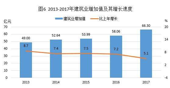 全年全社会建筑业增加值66.30亿元,比上年增长5.1%。