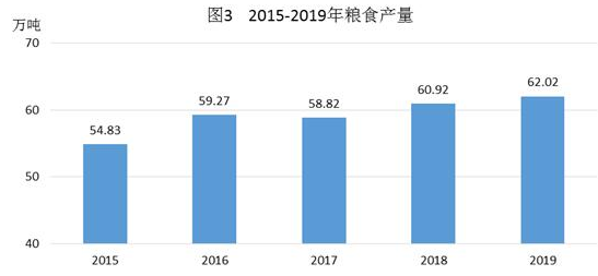 全年粮食产量620152吨,比上年增加10919吨,增产1.8%。其中,夏粮产量229吨,增产2.7%;早稻产量109868吨,减产1.1%;秋粮产量478710吨,增产2.4%。谷物产量588807吨,增产1.7%。其中,稻谷产量580510吨,增产1.7%;小麦产量229吨,增产2.7%;玉米产量8068吨,增产4.8%。