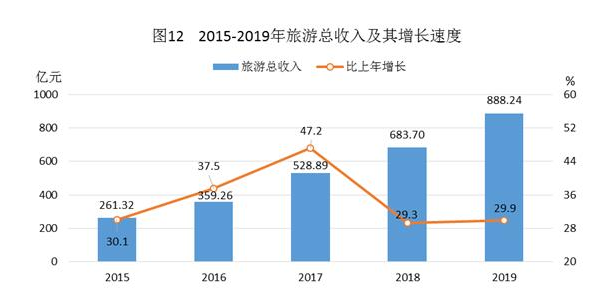 全年旅游总人数8506.33万人次,比上年增长26.3%。其中,境外旅游人数99.19万人次,增长35.9%。旅游总收入888.24亿元,增长29.9%。其中,旅游创汇4.74亿美元,增长41.7%。