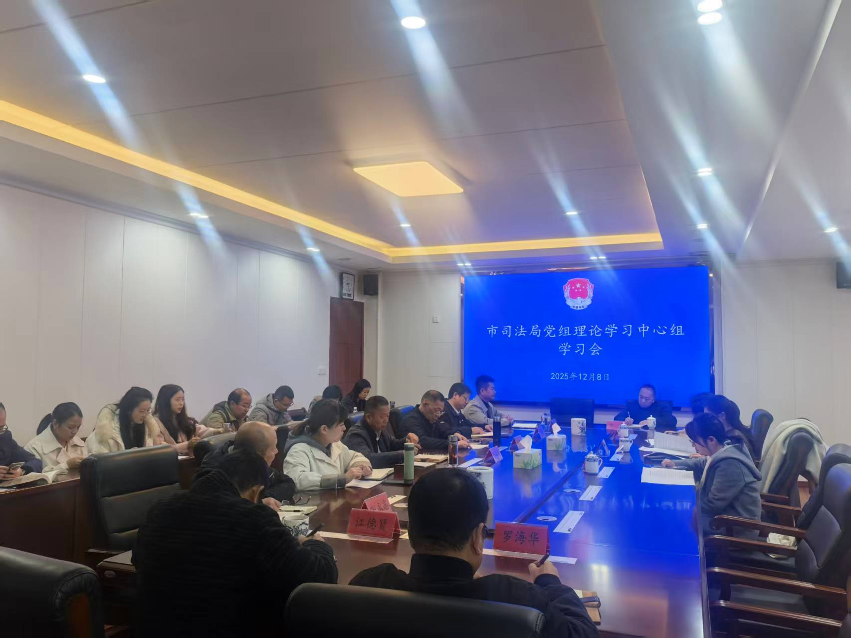 2025年12月8日,市司法局党组理论学习中心组举行了集体学习,深入学习党的二十届四中全会精神,重点学习《中国共产党第二十届中央委员会第四次全体会议公报》、全省领导干部会议精神和全市领导干部会议精神。局党组书记、一级调研员郑赞辉同志主持会议,全体班子成员发言,其他成员提交书面交流,机关各科室负责人参加会议,市直机关第十九列席旁听工作组列席指导并作点评讲话。
