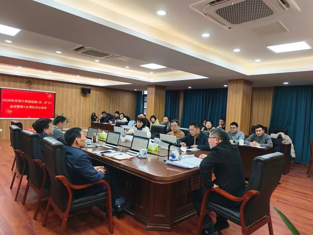1月26日,市审计局召开党组(扩大)会议,传达学习市十六届人大六次会议、市政协十四届六次会议精神,研究贯彻落实意见。局党组书记、局长吴水旺主持会议并讲话,局领导班子成员、各科(室、中心)负责同志参加会议。