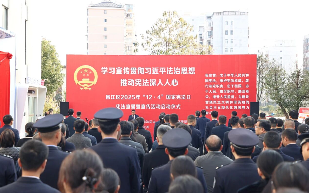 12月4日,在第十二个国家宪法日,昌江区举行2025年“12·4”国家宪法日宪法宣誓暨宣传活动启动仪式。高新区管委会主任、昌江区委书记倪卫春参加宣誓并为昌江区法治教育数字化体验馆揭牌。