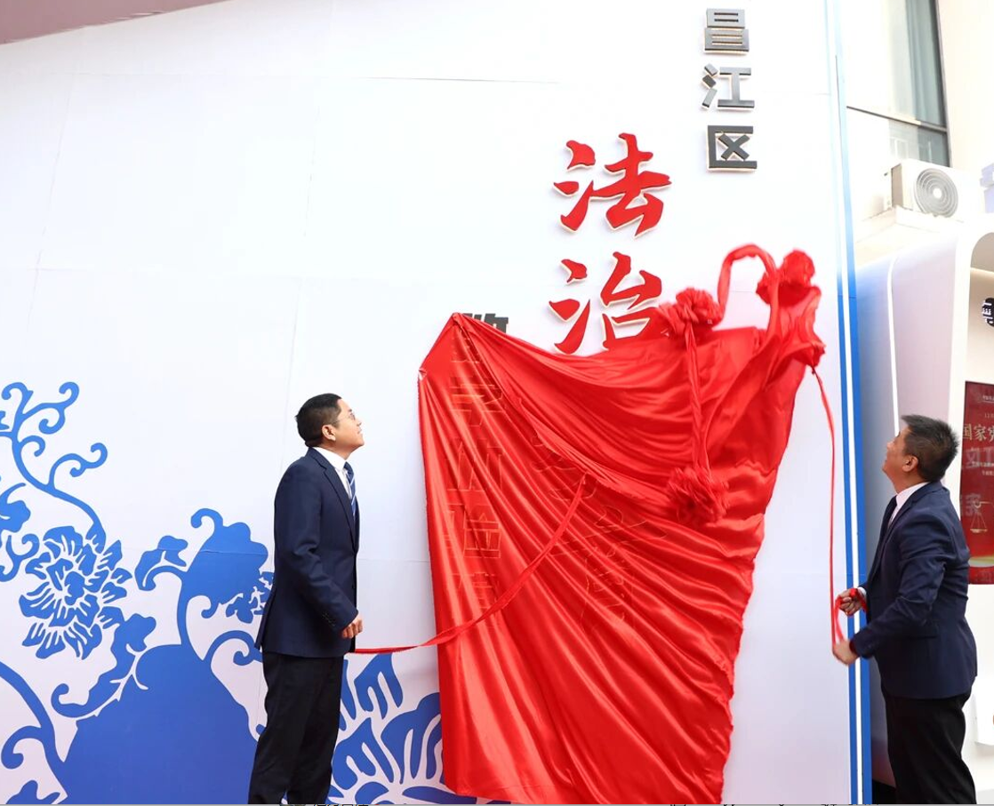 宣誓结束后,倪卫春和翁韶华共同为昌江区法治教育数字化体验馆揭牌。