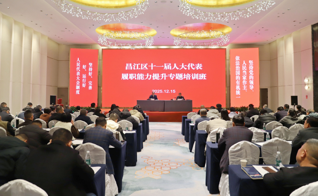 为深入学习贯彻党的二十届四中全会精神,准确把握新时代人大工作特点和规律,12月15日,昌江区2025年度人大代表履职培训班开班式在昌南里长天酒店举行。区人大常委会党组书记、主任李恩清出席开班式并讲话,区人大常委会党组成员、副主任王建安、程振火、彭金岭,副主任王娟出席,会议由程振火主持。