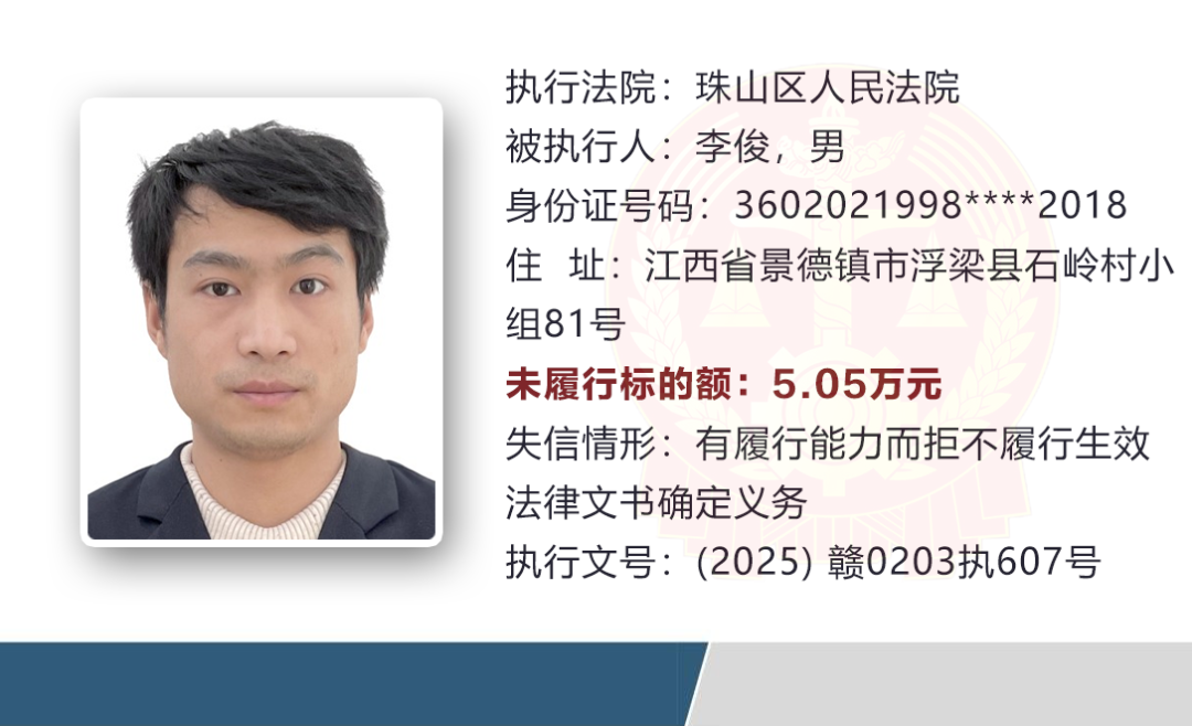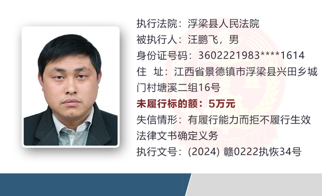 2025年景德镇第六批失信被执行人名单最新出炉!