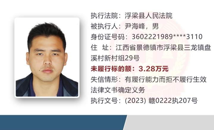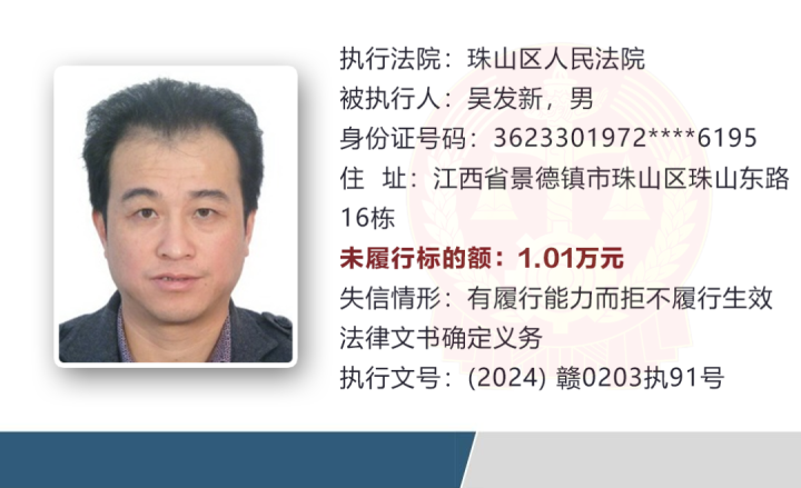 景德镇2024年第八批失信被执行人名单最新出炉!