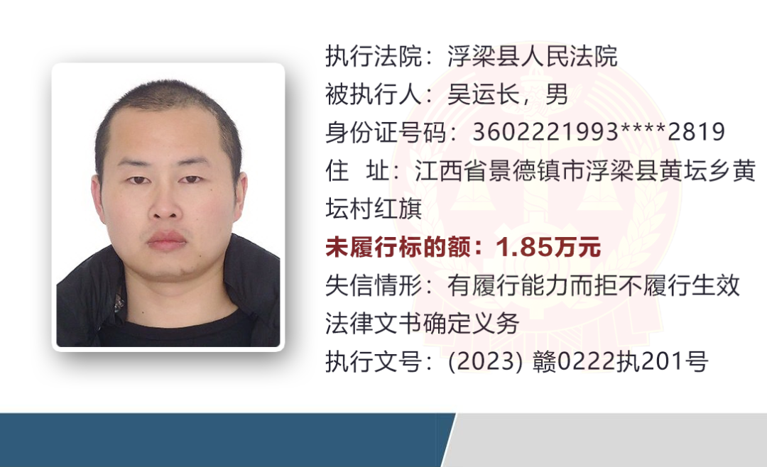 景德镇2024年第九批失信被执行人名单最新出炉!