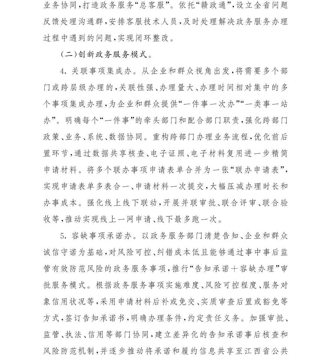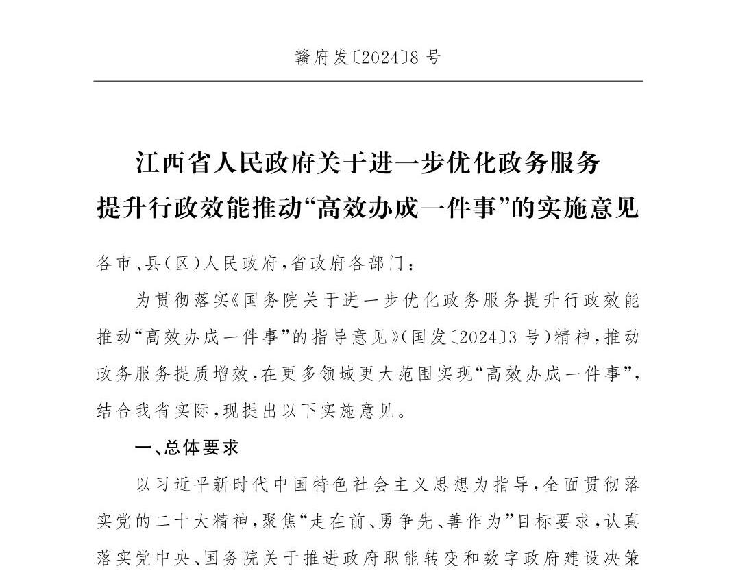 江西省人民政府关于进一步优化政务服务提升行政效能推动高效办成一件事的实施意见