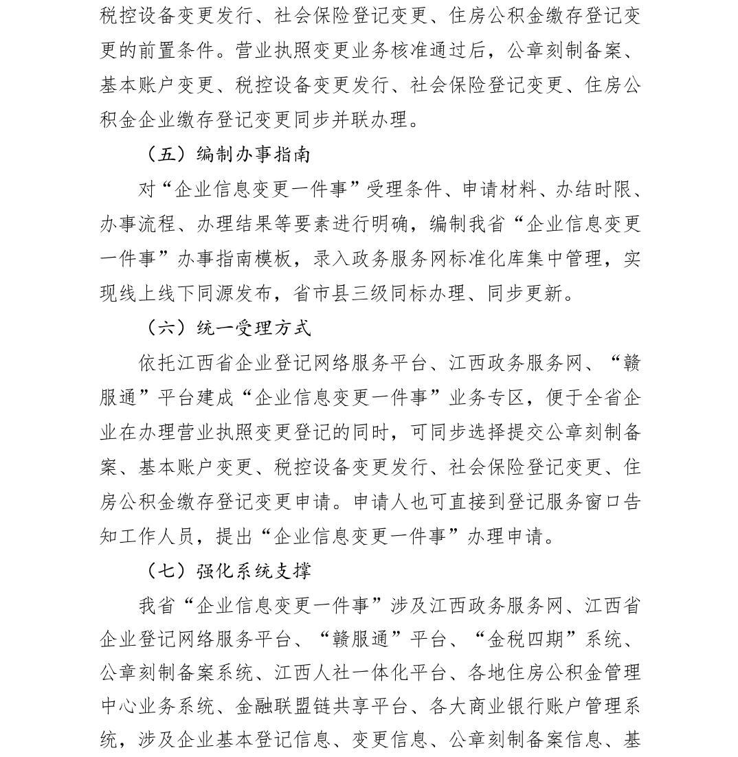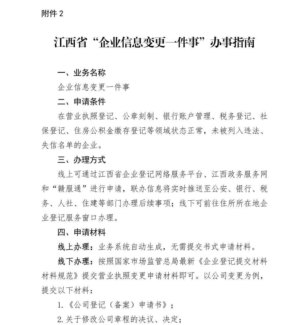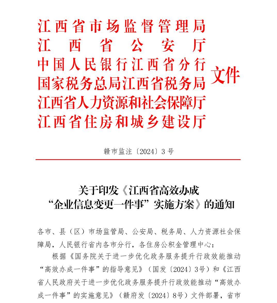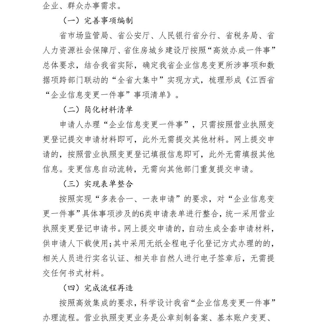 江西省高效办成“企业信息变更一件事”实施方案