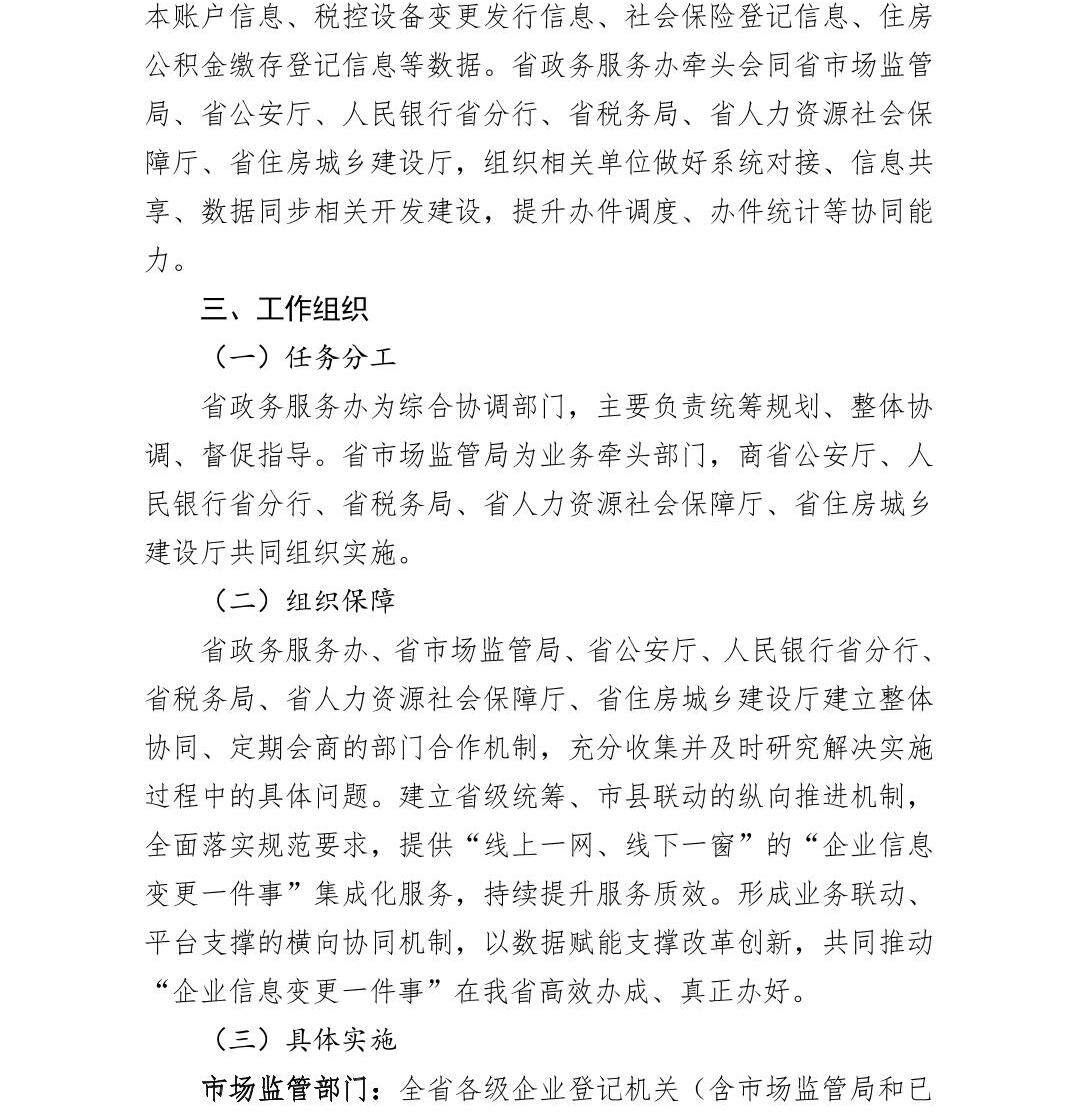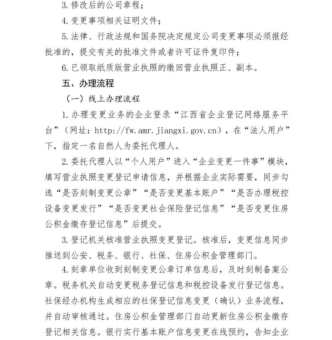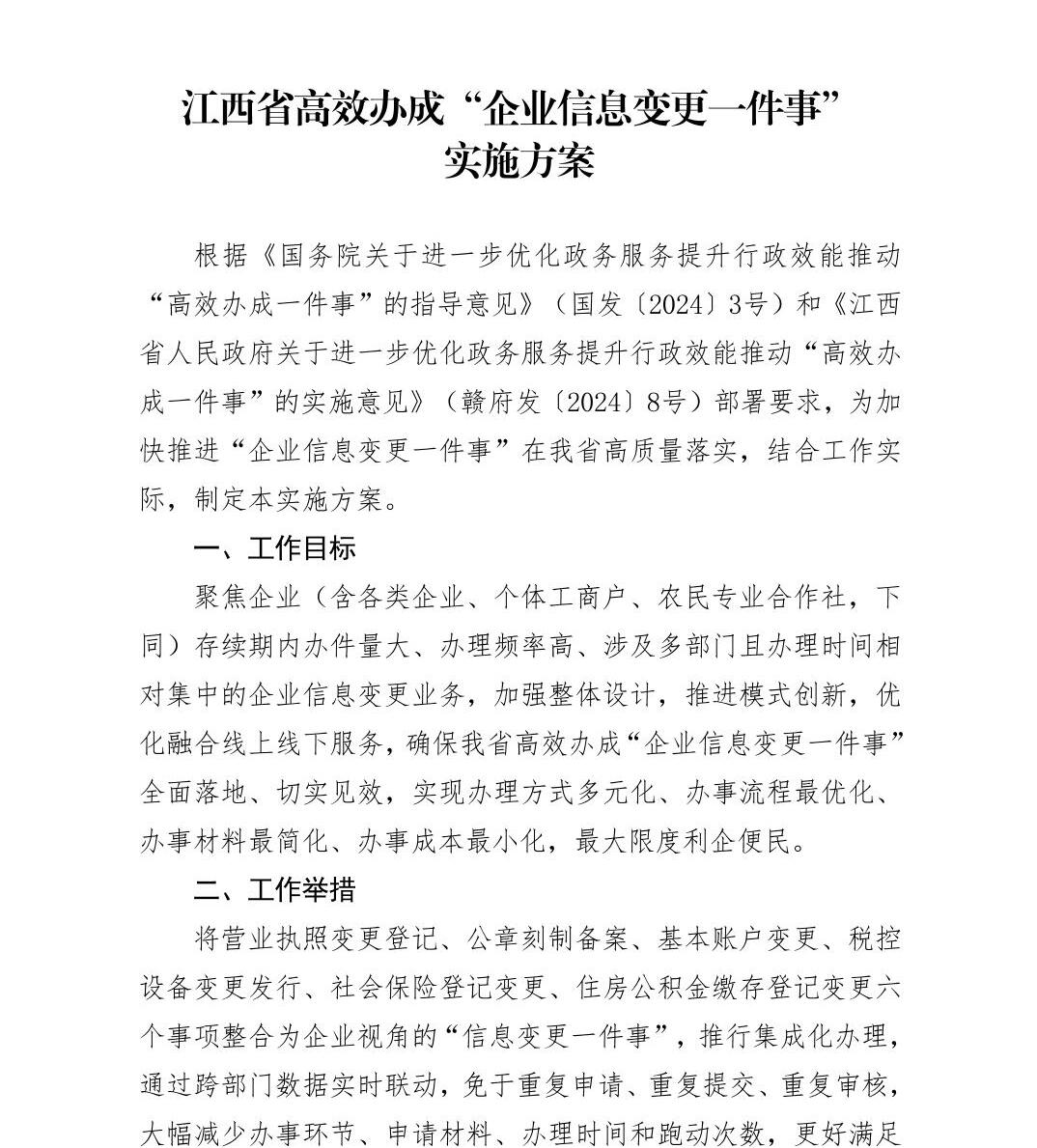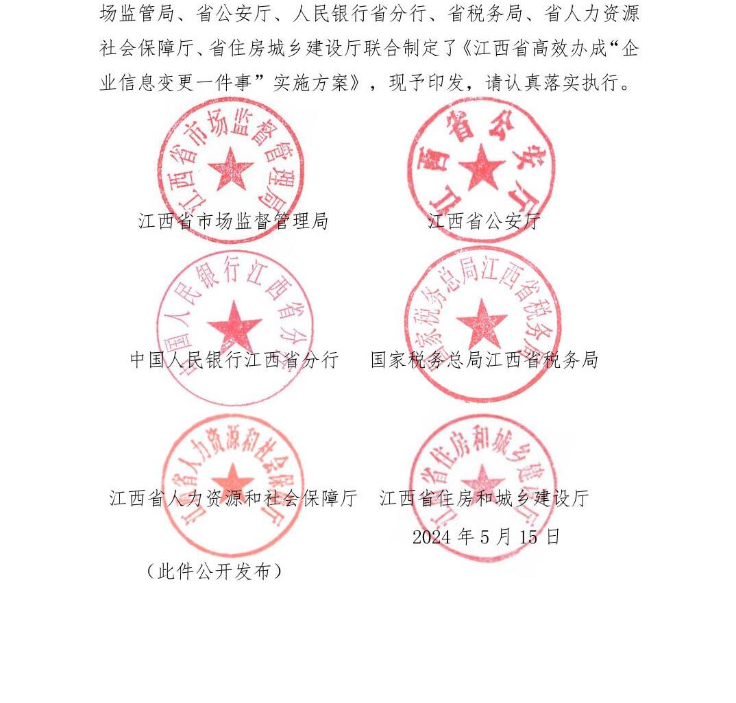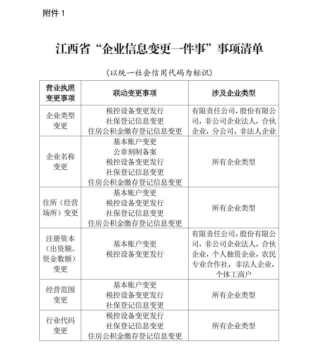 江西省高效办成“企业信息变更一件事”实施方案