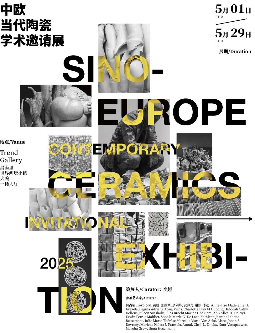 2025年5月1日,“Sino-Europe Contemporary Ceramics Invitational Exhibition 中欧当代陶瓷学术邀请展” 在 Trend Gallery(昌南里世界潮玩小镇 “大碗” 园区内)开幕。此次展览由昌江区政府、中国非物质文化遗产保护协会陶瓷分会、景德镇陶瓷大学设计艺术学院等机构联合主办,“一带一路”国际陶瓷教育联盟、香港轻工业协会等机构协办,李超担任策展人。共展出何占福、黄胜、张婧婧、余剑峰、袁海龙、张三聪、邵长宗、谢添、冯薇娜、李立宏、李超、Torbjorn Kvasbo、Erwin Pervitus Mallieft、Sophie Marie G. De Laet、Kathleen Jeanne Liliane Devroey、Anne - Lise Madeleine H. Kerkels、Regina Adriana Anna Vrins 等 30余位中欧艺术家近期在景德镇创作的 40 余件陶瓷佳作。