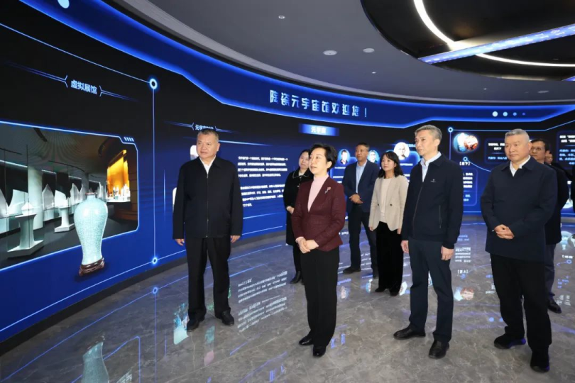 在陶瓷元宇宙馆,胡雪梅听取了企业负责人介绍,通过数字化平台观看了陶瓷发展历史、科技发展进程以及拉坯、施釉、烧制等艺术创作,现场感受新技术带来的沉浸式体验。在溯源展示区域,胡雪梅询问陶瓷艺术品电子身份证情况,观看瓷瓶3D扫描过程,对数字化技术在促进市场流通方面的运用提出具体要求。胡雪梅要求,要加快进度、加大步伐,进一步完善场馆功能设施,给大众带来更好的物理空间体验,为我市数字经济产业发展添砖加瓦。