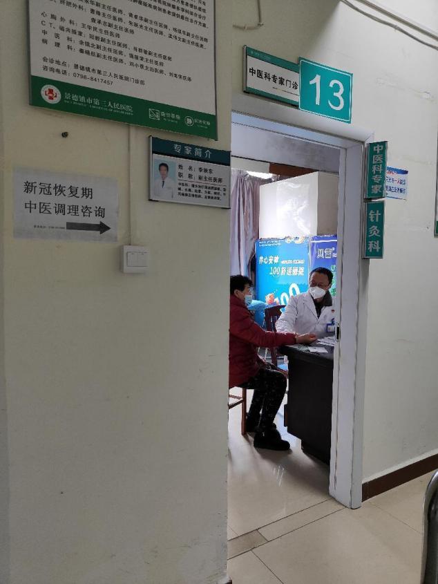 景德镇市第三人民医院中医科采用多种中医特色治疗法,其中内治法以中药汤剂为主,经辨证分型后,以扶正祛邪为基本治疗原则,或化痰祛湿,或活血化瘀,或健脾润肺,或益气养阴;外治法包括热敏灸、推拿、针刺、拔罐、穴位贴敷、耳穴压豆、保健按摩等,以及太极拳、八段锦、六字诀、吐纳调息等养生功法,内外并用,可帮助新冠恢复期患者缓解不适症状,恢复脏腑机体功能。