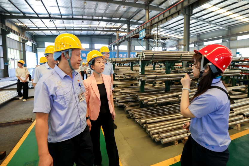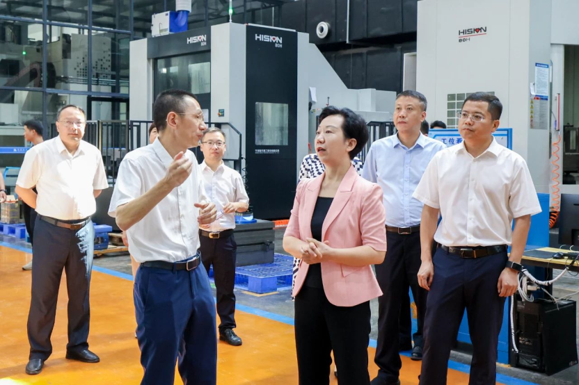 在江西景航航空锻铸有限公司鱼山厂区,胡雪梅走进厂房车间,察看了航空类零部件的锻造、铸造及其深加工过程。从产品成型到热处理,从集控室到模具库,她对企业文化给予称赞,对数字化平台建设成效表示肯定。她指出,通过插上数字化翅膀,企业的管理、生产和经营产生了倍增效应,希望企业再接再厉、示范引领,实现全链条数字化,朝着更加科学、规范、智能方向迈进。