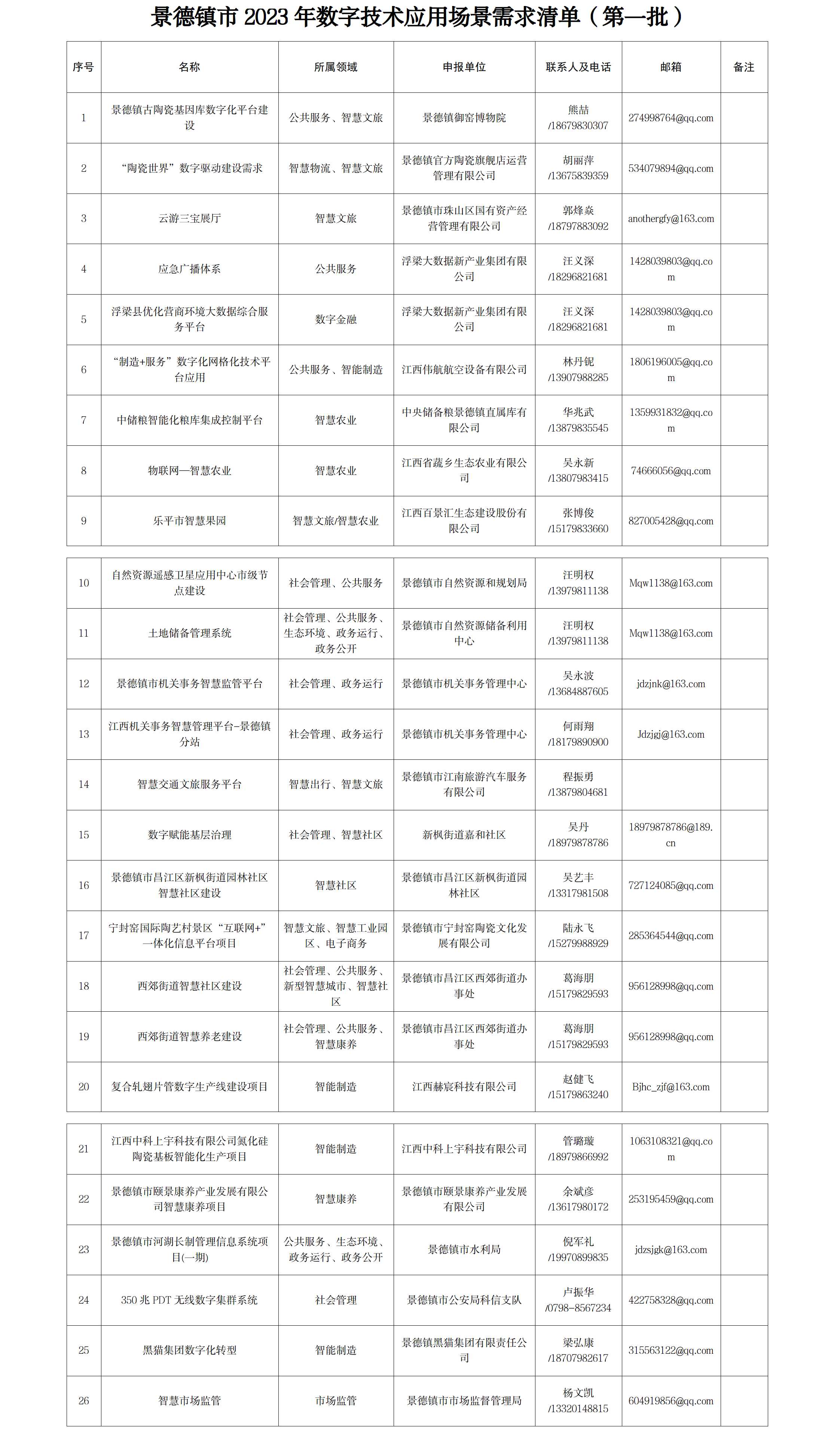 景德镇市2023年数字技术应用场景需求清单(第一批)