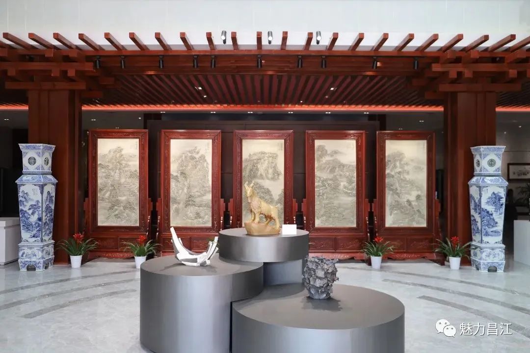 揭幕仪式结束后,领导嘉宾走进位于基地的“合盛宁封陶瓷艺术馆”,参观“百匠汇昌江”艺术陶瓷展。百名陶艺家创作的数百件艺术陶瓷精品在这里展出。