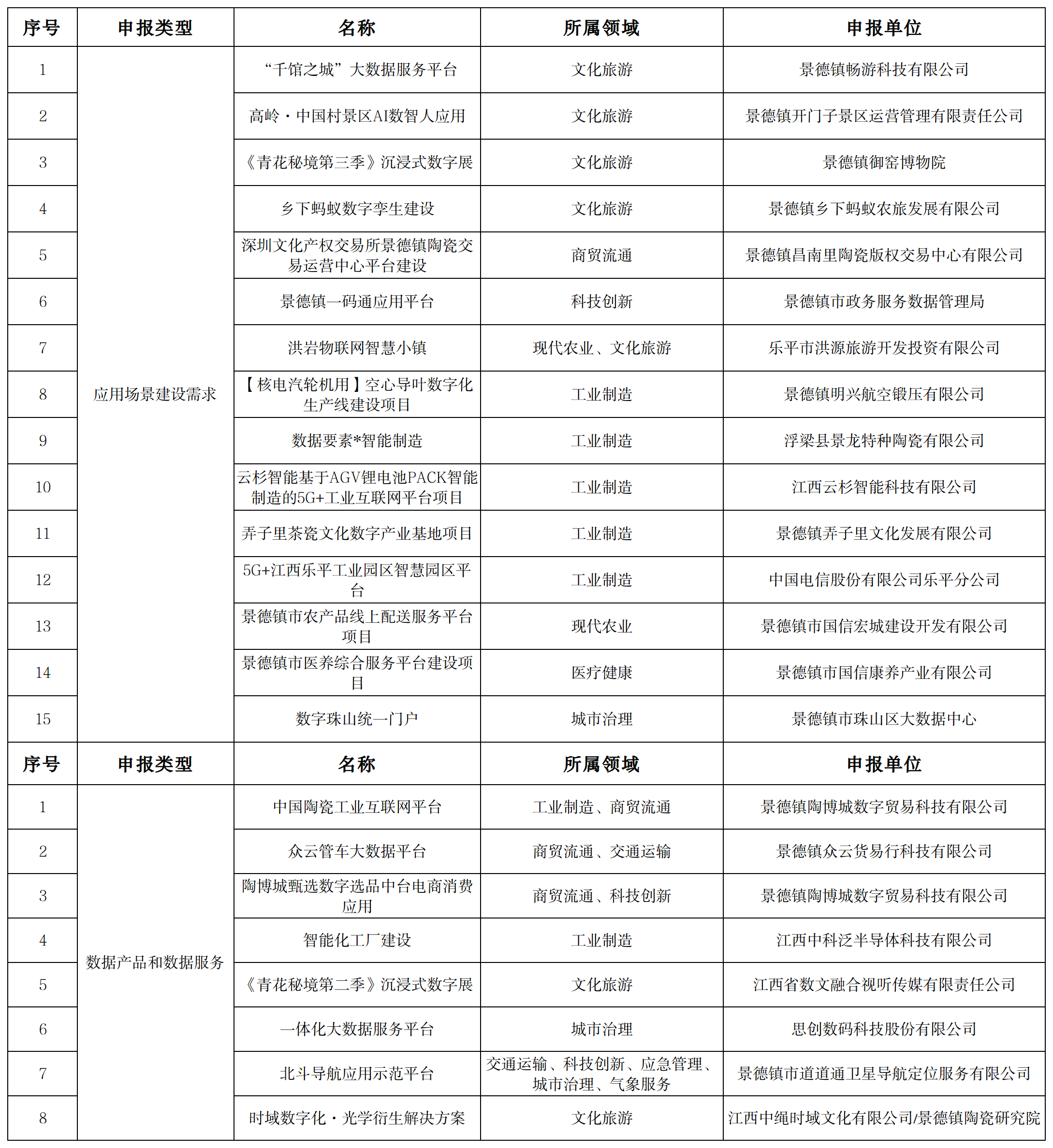 景德镇市2024年数据要素应用场景清单