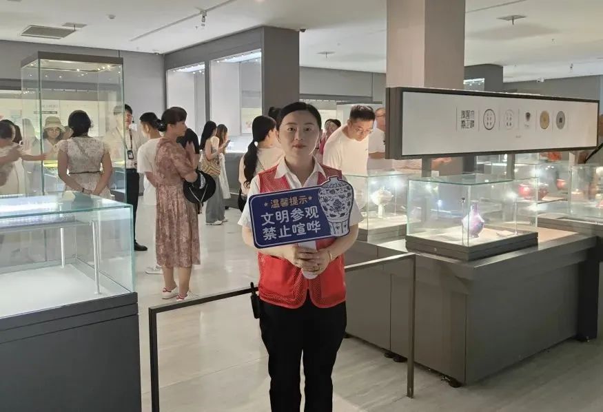 另一方面,为了进一步营造安静、专注的观展氛围,我们精心设计并制作了文明参观劝导手举牌。在展厅内,志愿者会适时举起手举牌,以直观、醒目的方式提醒观众注意自己的言行举止,共同维护良好的观展环境。