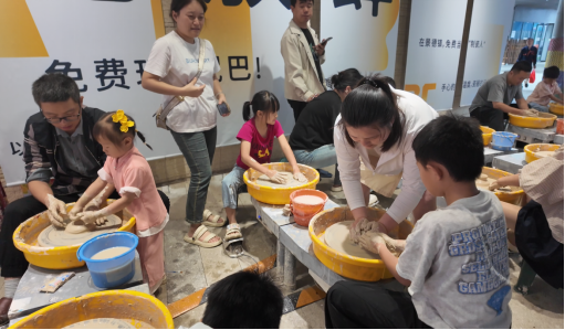 为增强游客文化体验,陶博城推出“免费玩泥巴”文化体验活动。志愿者凭借专业知识和热情服务,传播陶瓷文化、增添游览乐趣,进一步展现景德镇友好、好客的城市形象。