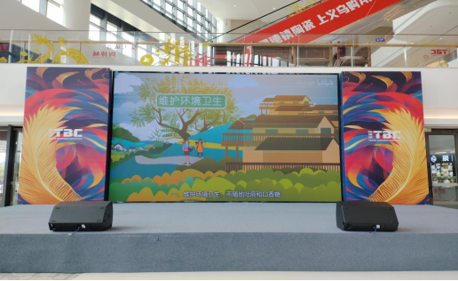 陶博城充分利用交易中心大型电子屏循环播放文明旅游宣传片,内容涵盖交通规则、环境保护、尊重习俗等多方面,贴近实际游览场景,引导游客文明出行。