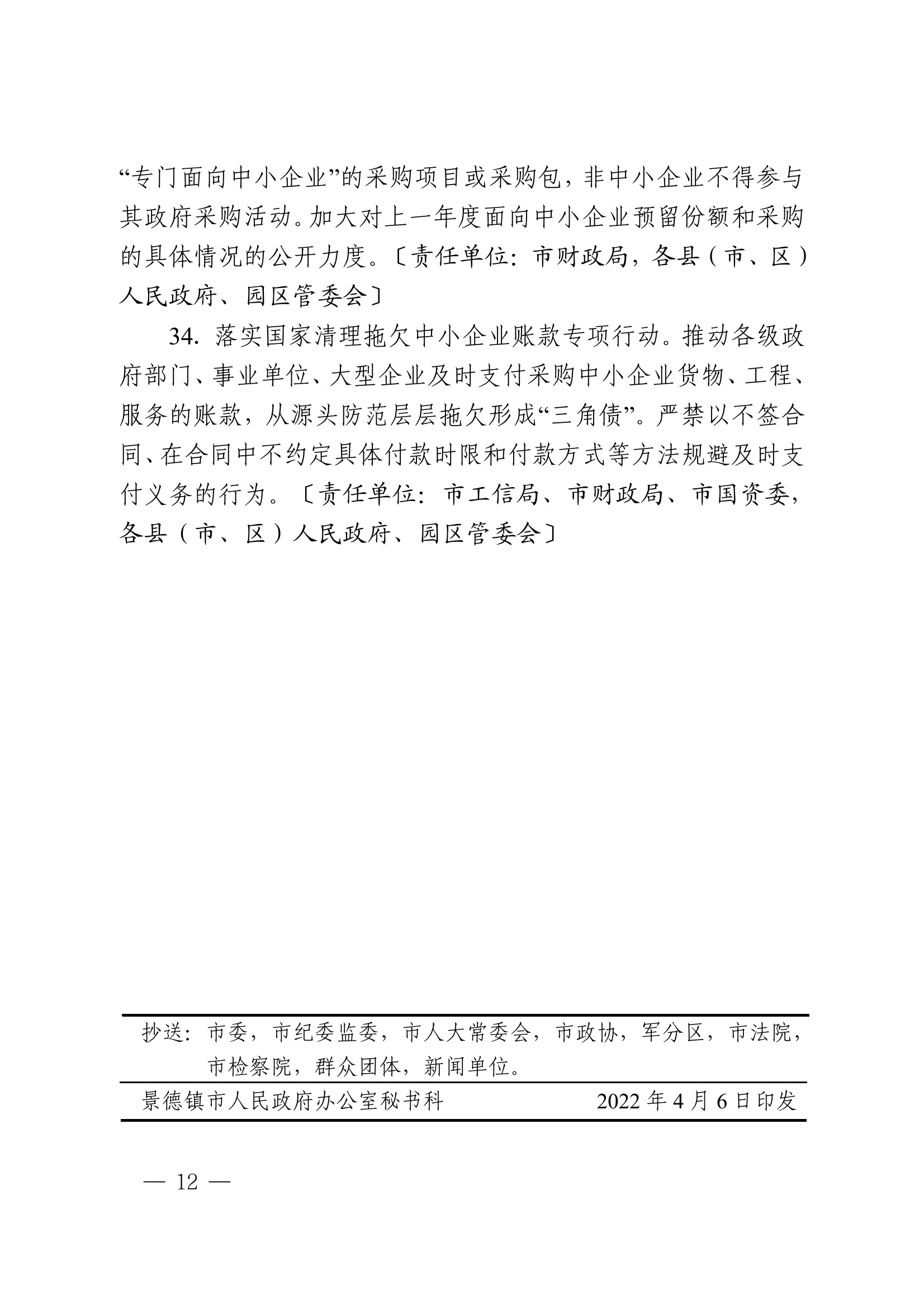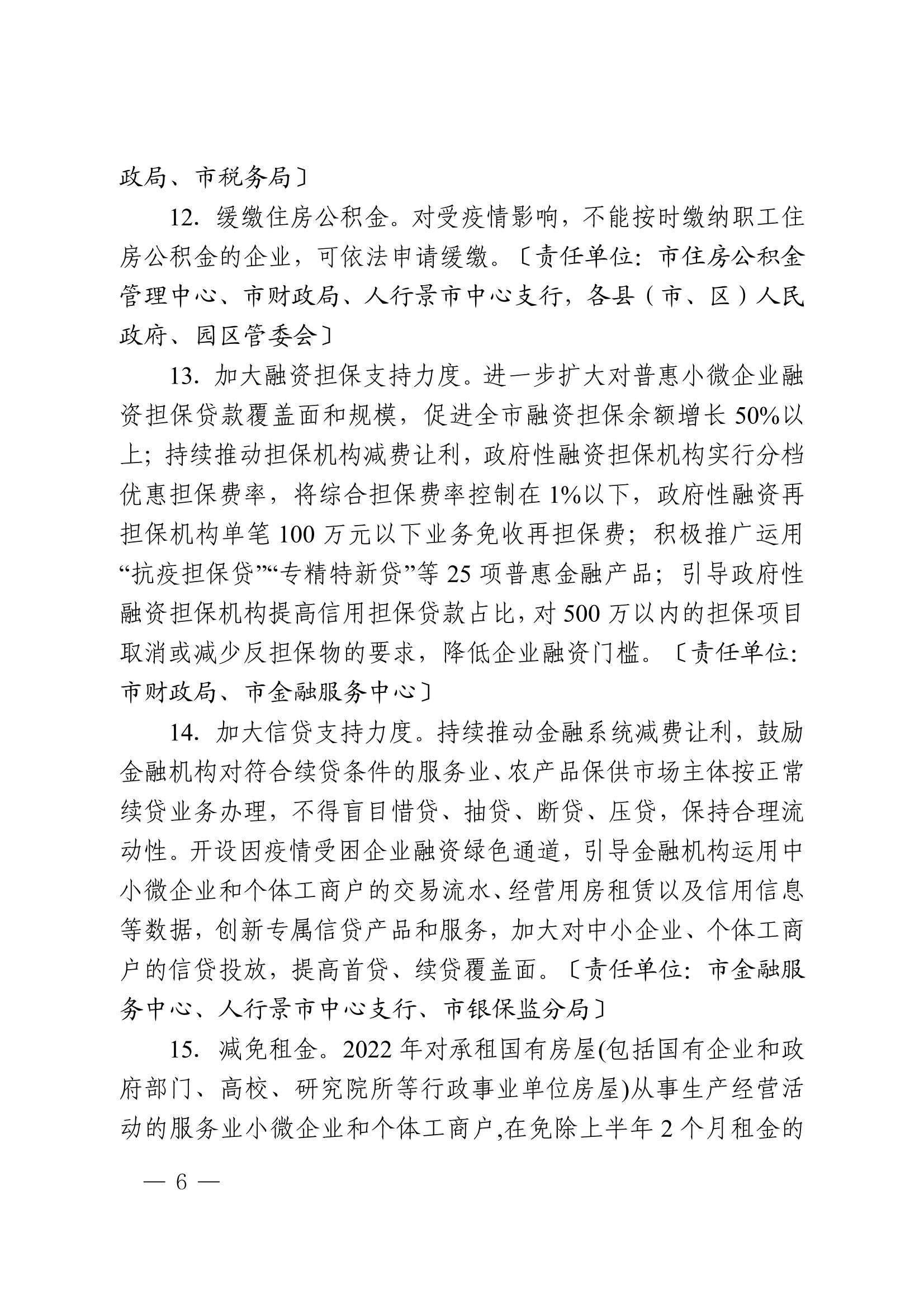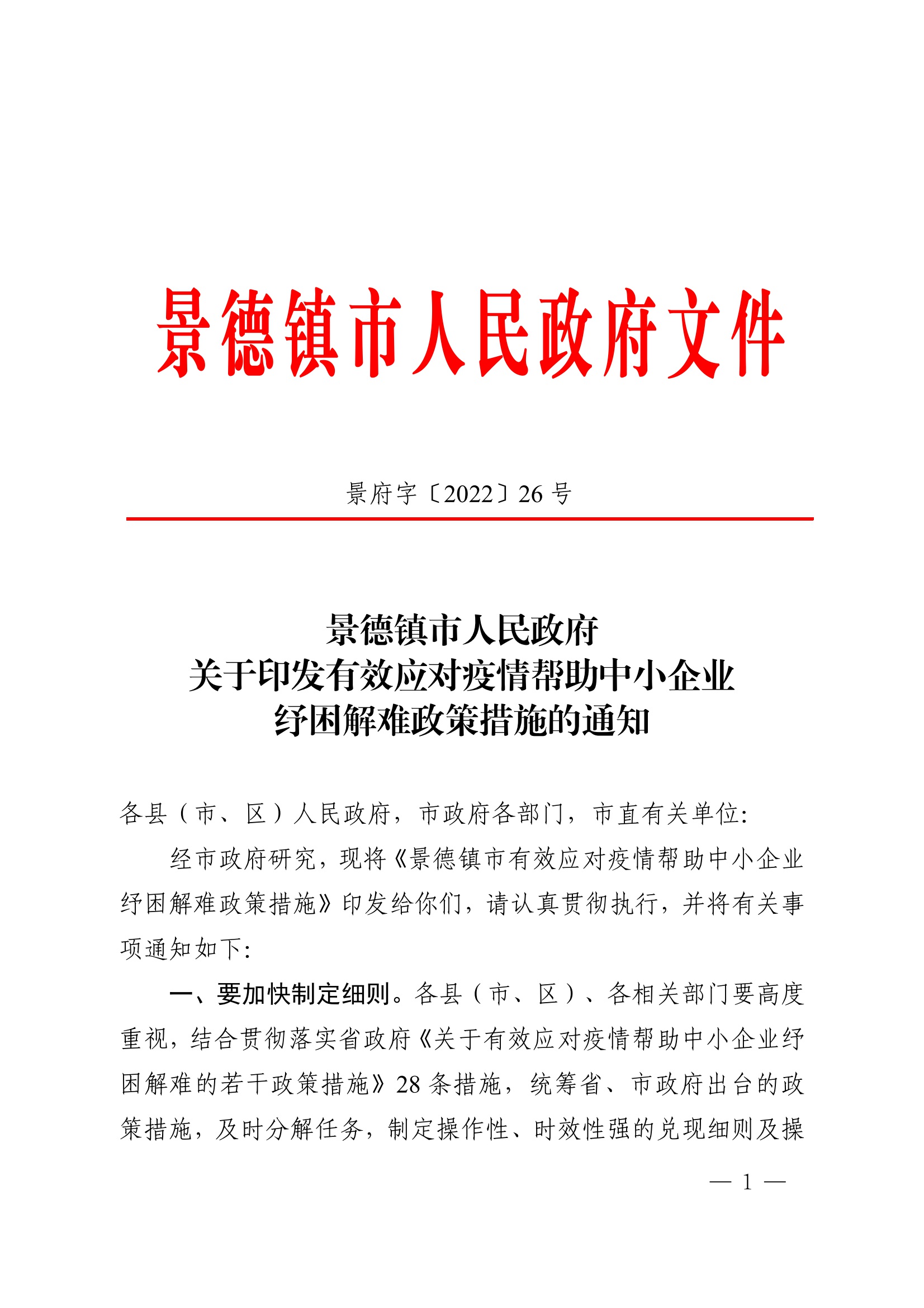 景德镇市人民政府印发关于有效应对疫情帮助中小企业纾困解难若干政策措施的通知