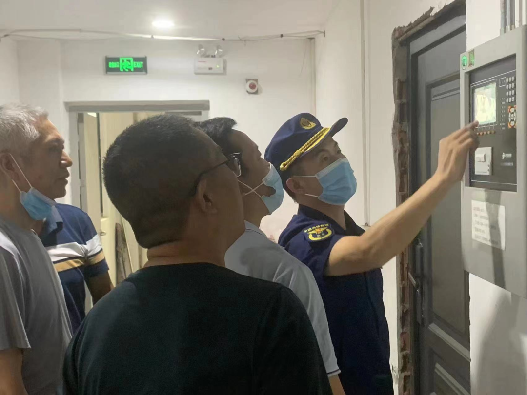消防监督执法人员对单位消防设施进行检查