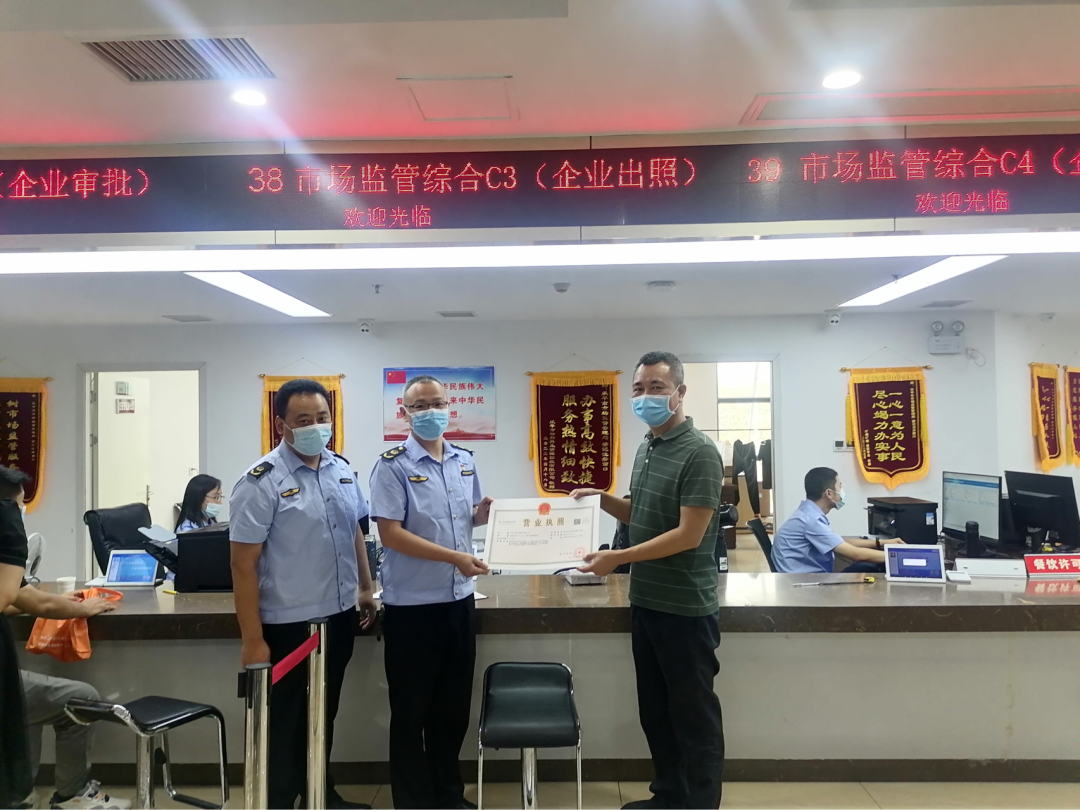 非常感谢!没想到你们特意从市里赶到乐平来我们企业上门指导,并在乐平市市场监管局现场审核、发照。”9月16日下午4点左右,在乐平市市场监管局政务服务窗口,江西天新药业股份有限公司徐荣华接过刚刚打印出,还带着墨香余温的营业执照时,激动地不停对景德镇市市场监管局政务服务窗口负责人表示着谢意。