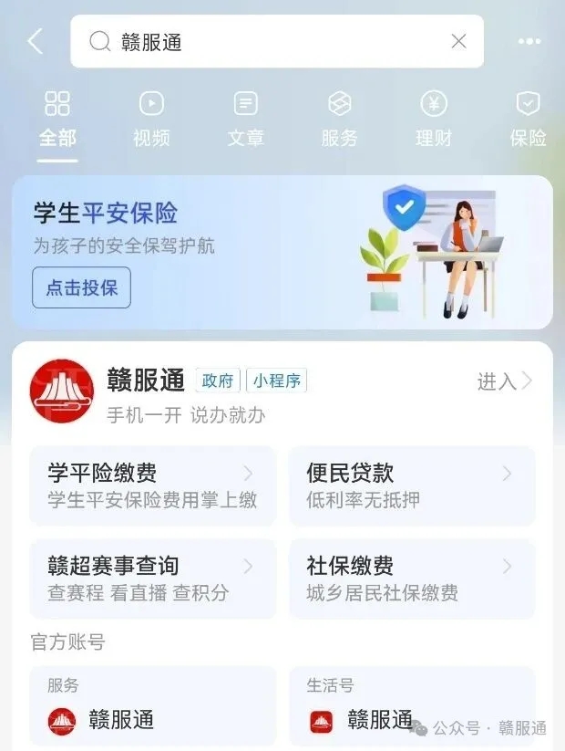 1.在应用市场下载“赣服通”APP或在支付宝搜索“赣服通”进入平台。