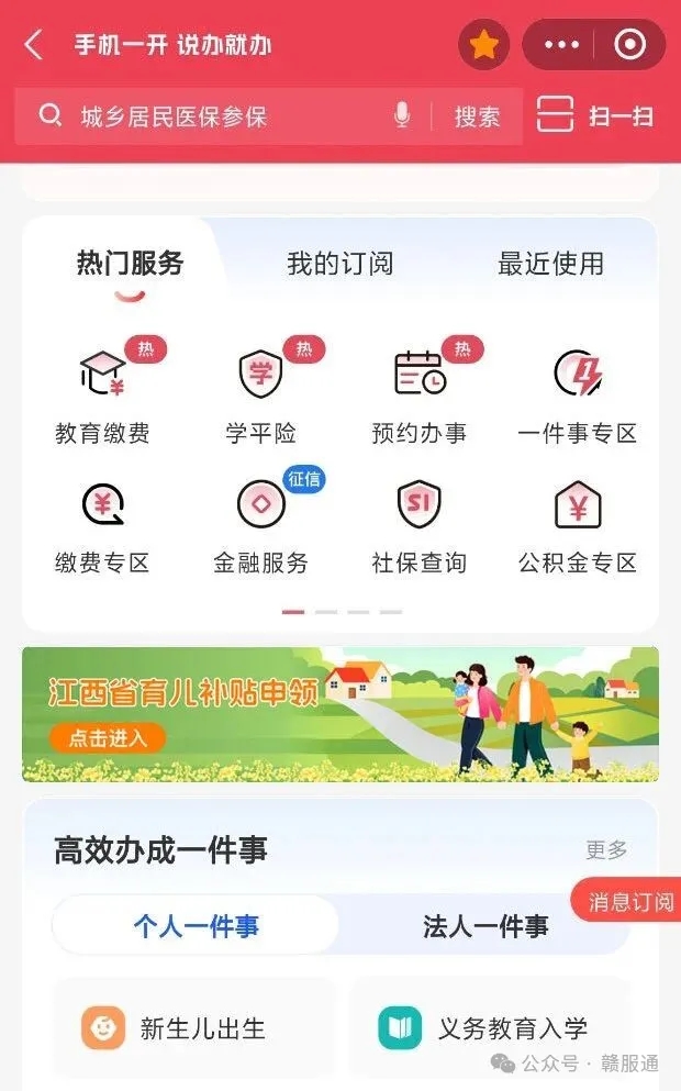“赣服通”卫健专区育儿补贴服务即将正式上线,9月6日起,符合条件的家庭可通过“赣服通”在线申领育儿补贴。