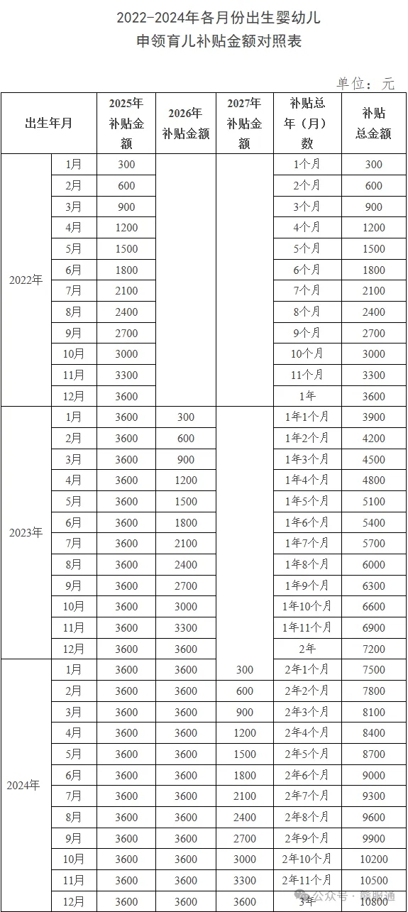 (1)对于2025年1月1日及以后出生的婴幼儿,可连续申领3年补贴,共计10800元。