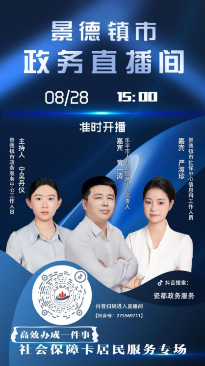 周三说政事:社会保障卡居民服务专场。8月28日下午三点整,和您不见不散!