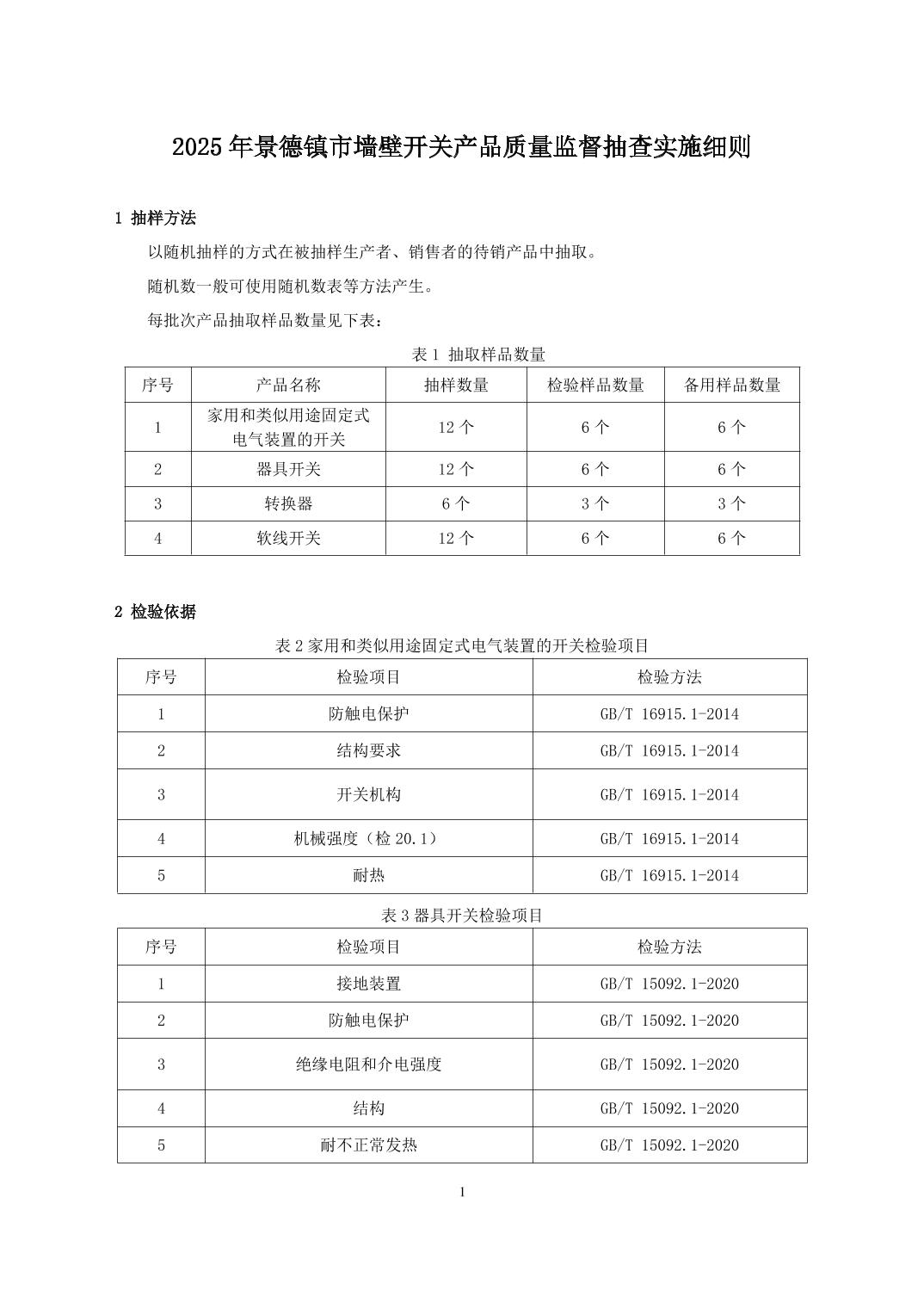 2025年景德镇市墙壁开关产品质量监督抽查实施细则