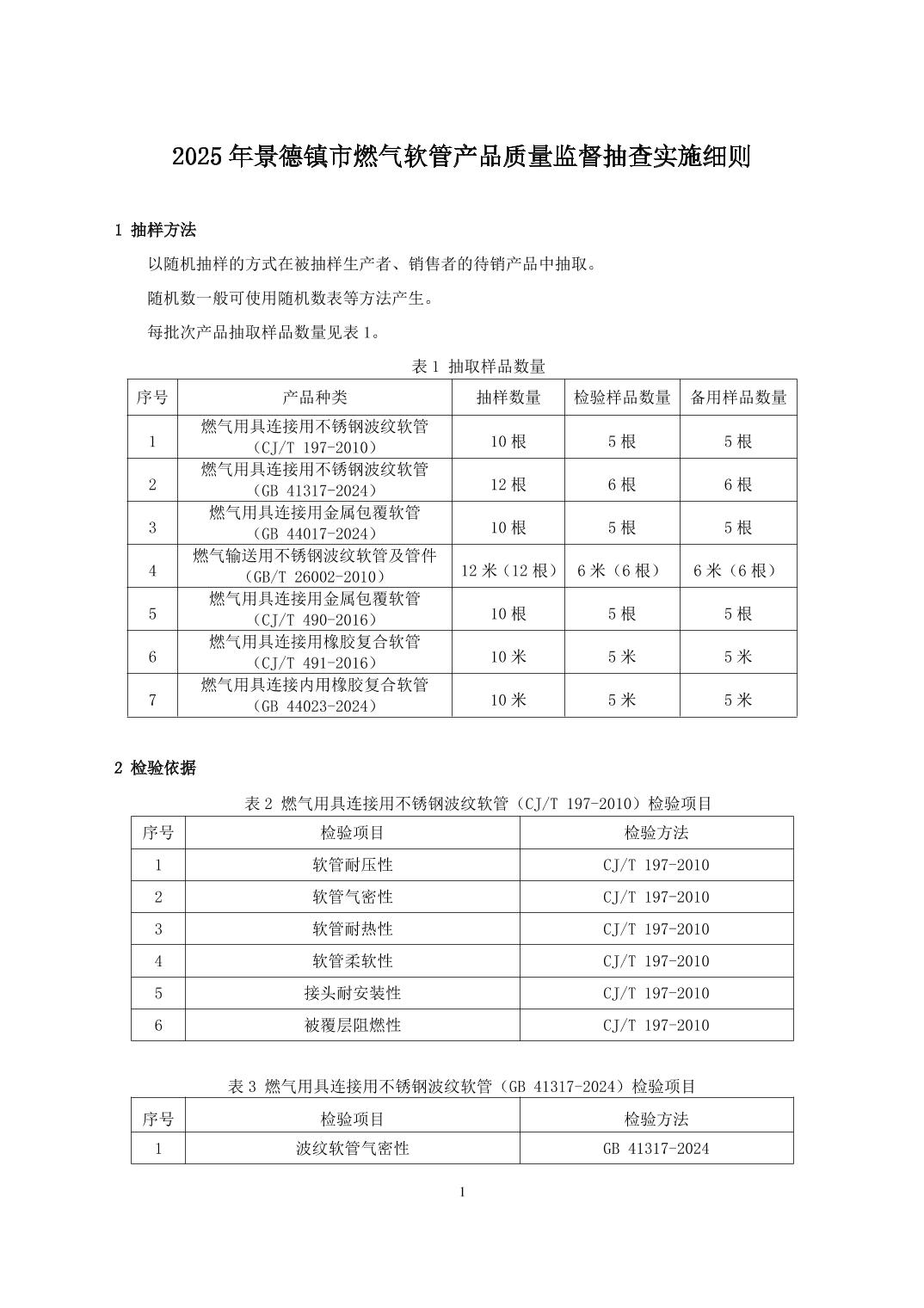 2025年景德镇市燃气软管产品质量监督抽查实施细则