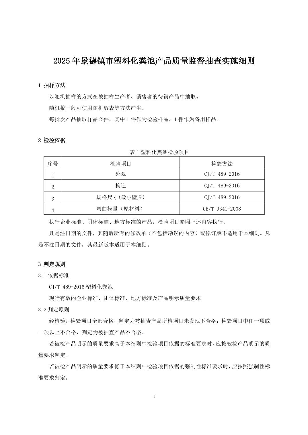 2025年景德镇市塑料化粪池产品质量监督抽查实施细则
