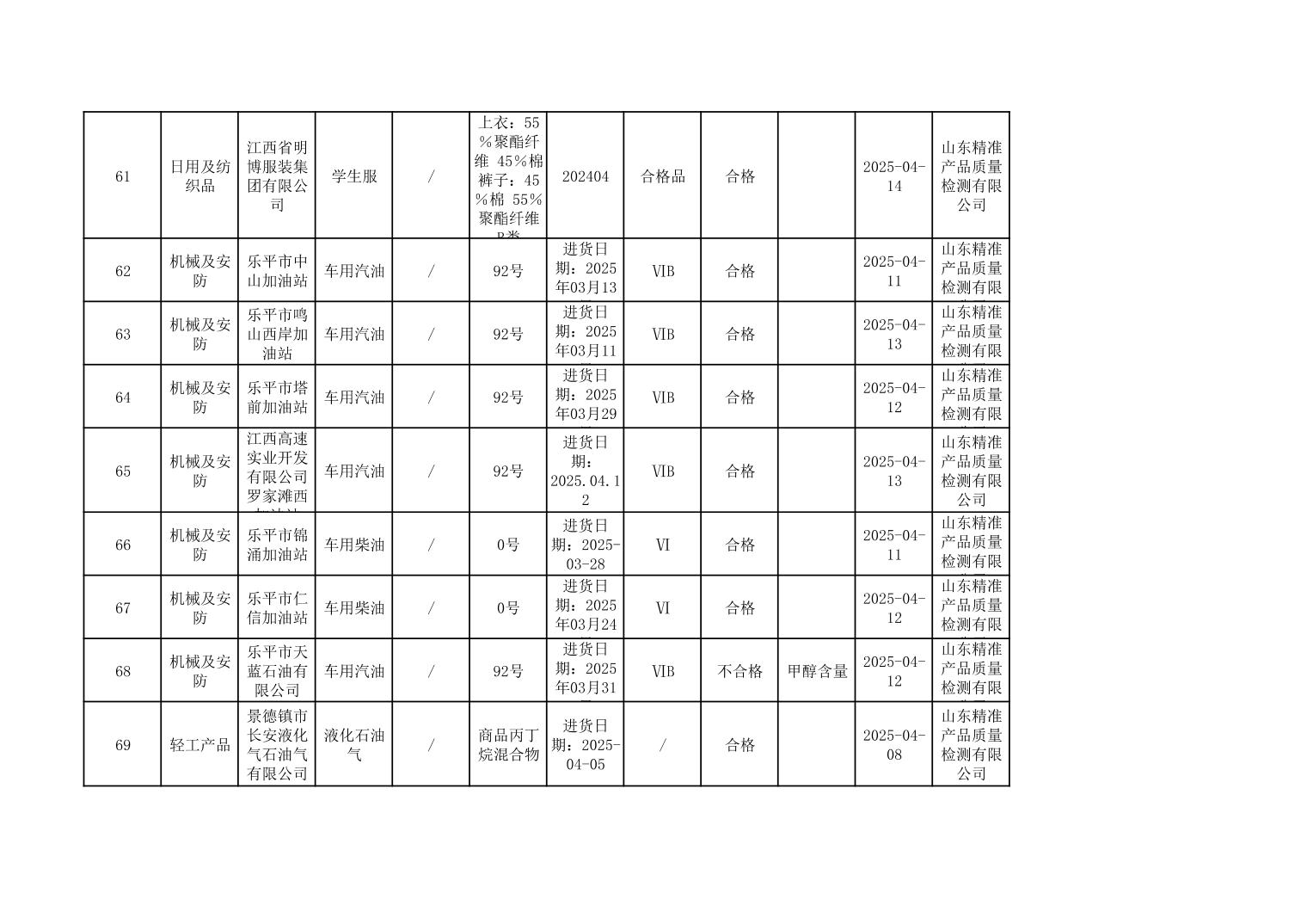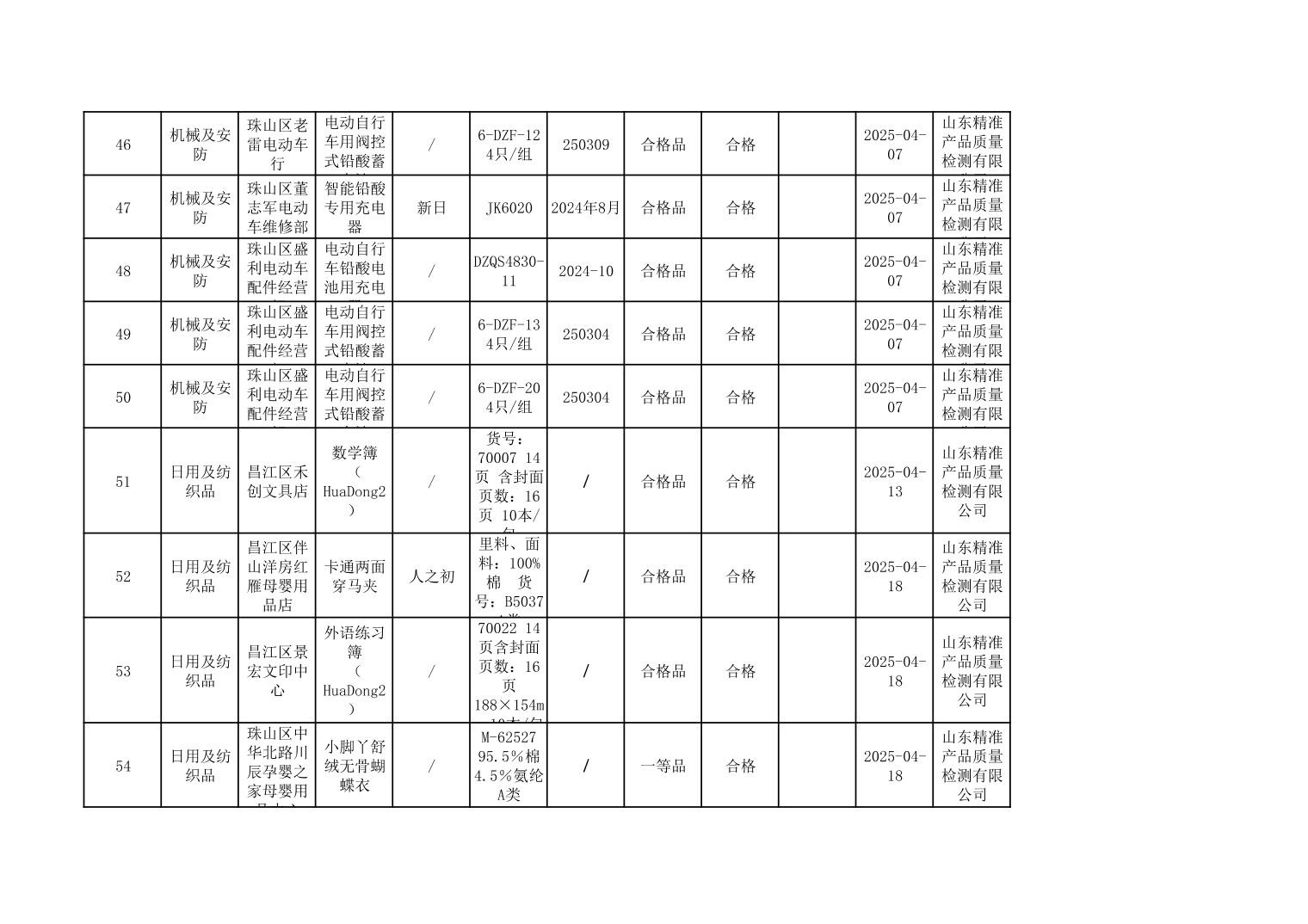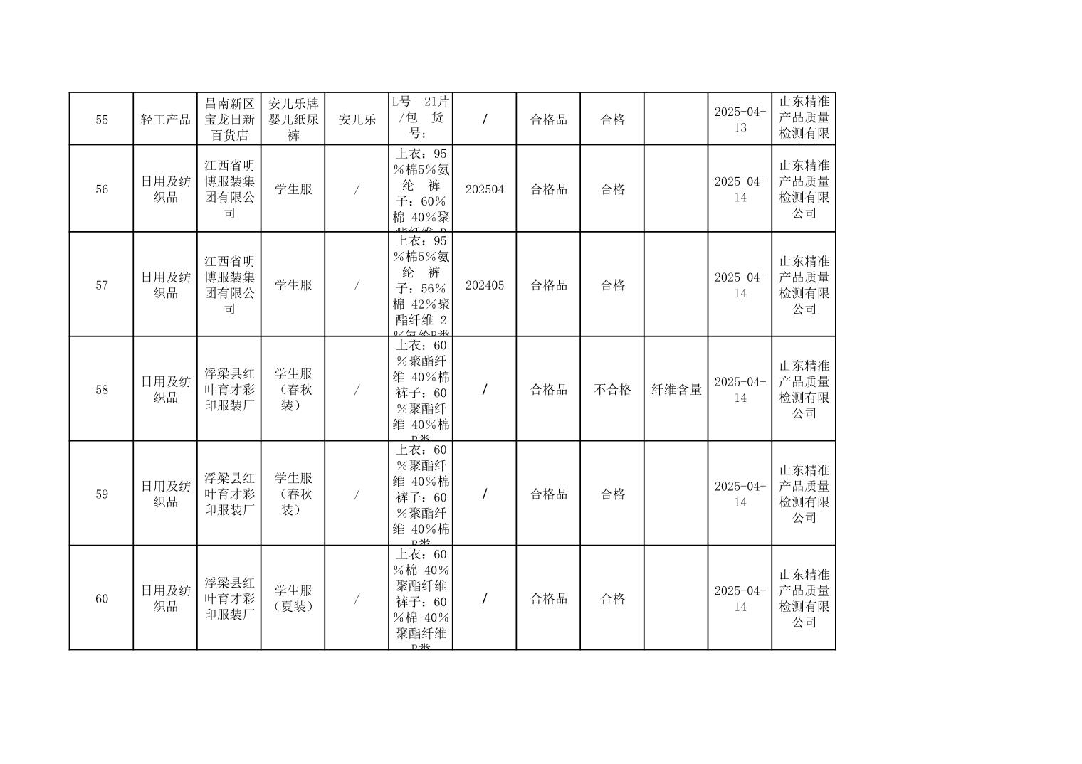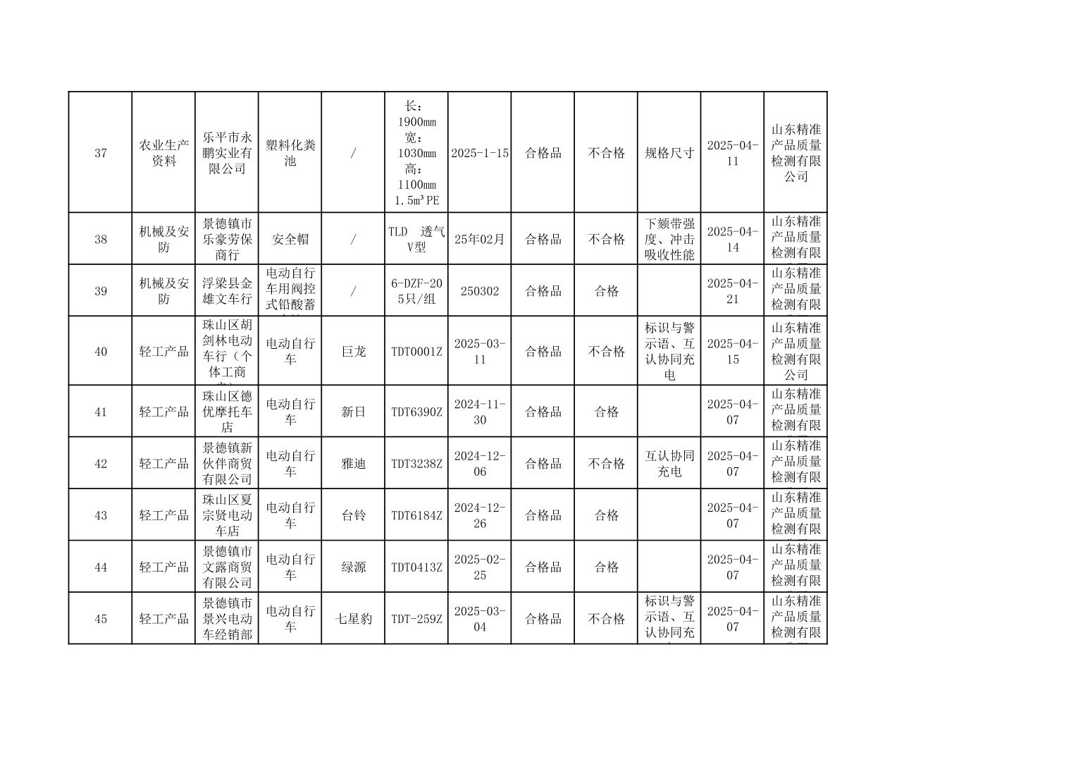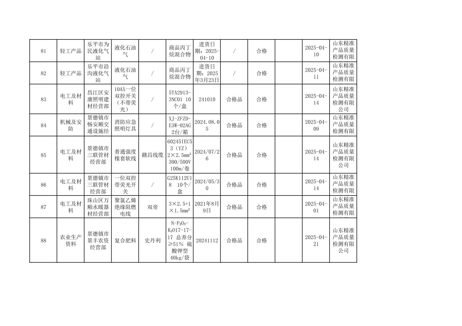 2025年度景德镇市市场监管局市级工业产品质量监督抽查结果公示表