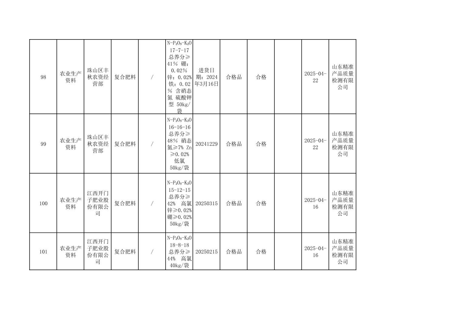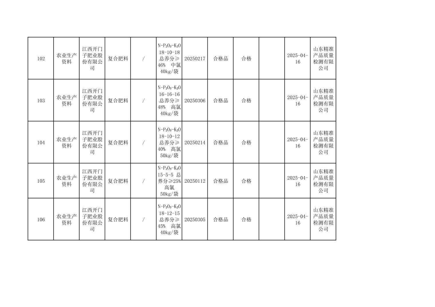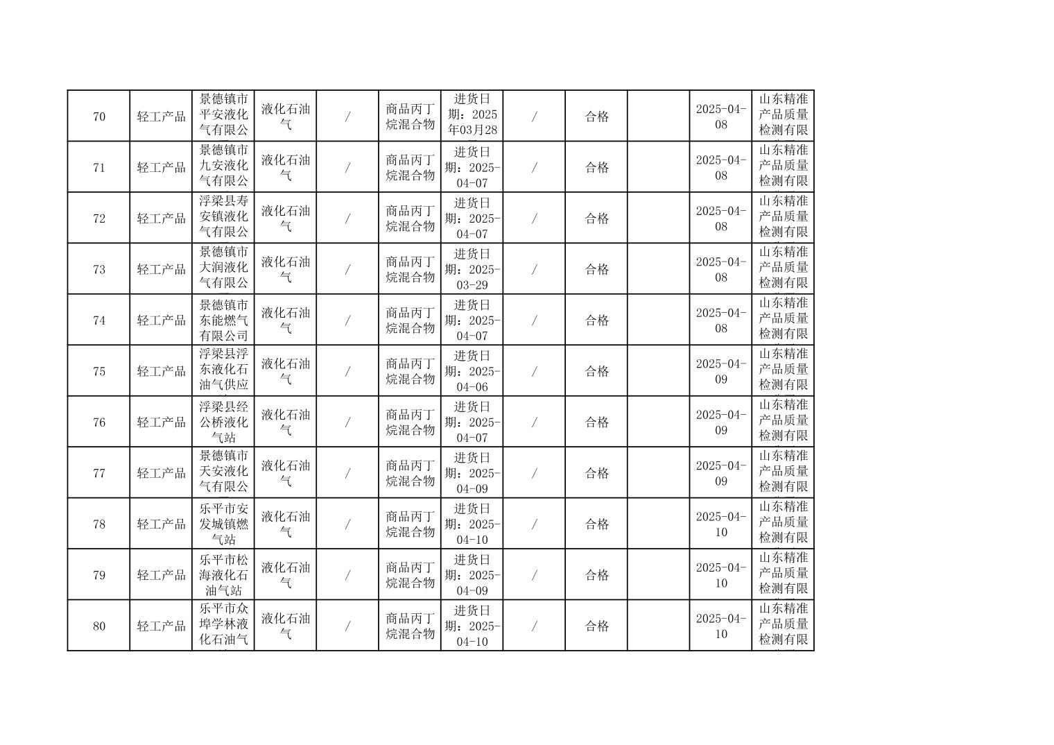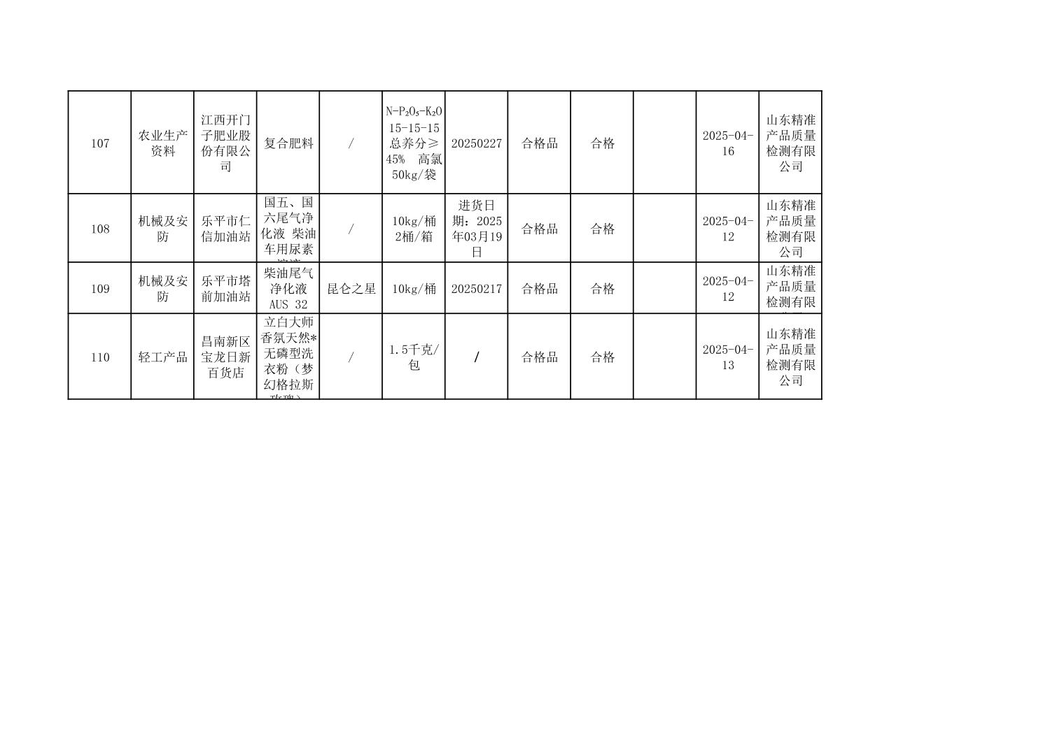2025年度景德镇市市场监管局市级工业产品质量监督抽查结果公示表