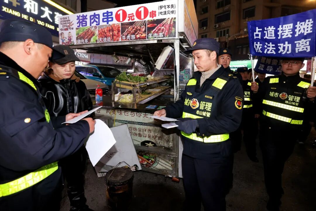 本次行动由属地政府统筹,城管部门牵头,联合公安、市场监管、住建、生态环境、消防及属地街道等多部门共同实施。重点围绕道路、交通、食品、用电用气、环境五大安全领域开展执法检查,先后对昌江区景泰路康家花园段、珠山区里村转盘周边等重点区域进行了集中整治。累计出动执法人员120余人次,劝导规范流动摊贩100余起,依法查处违规占道经营行为20余起,清理占道堆放杂物10余处。