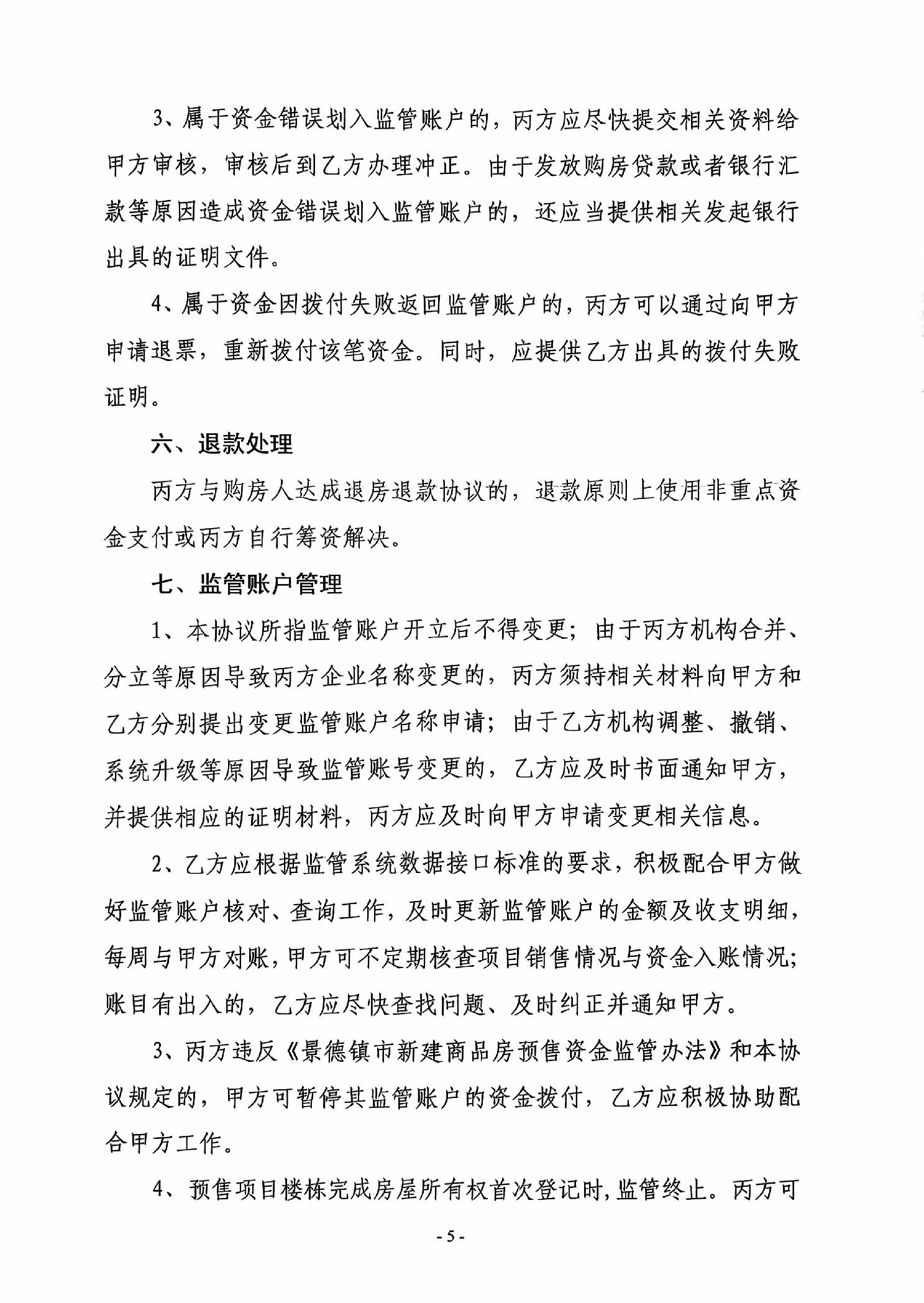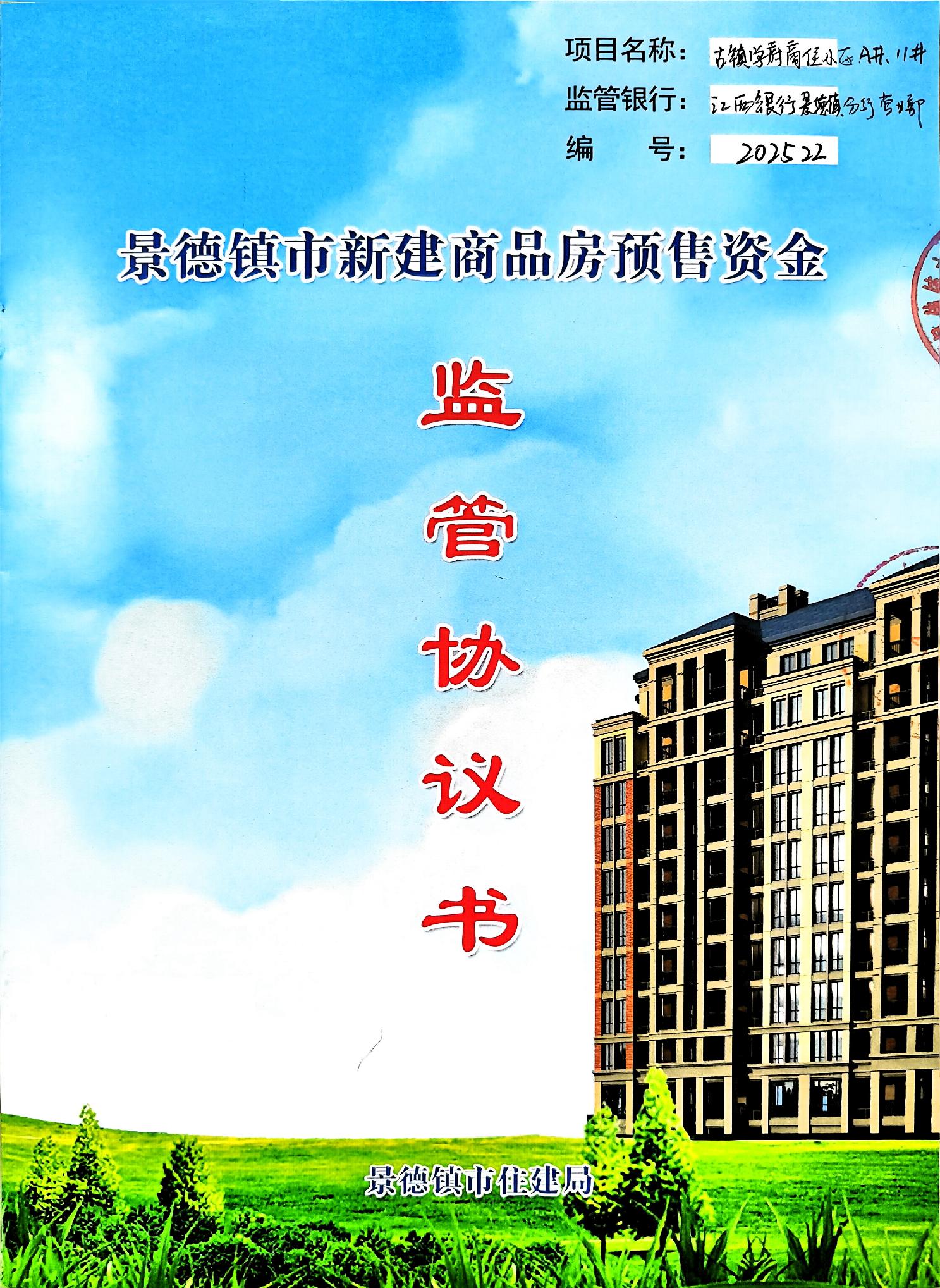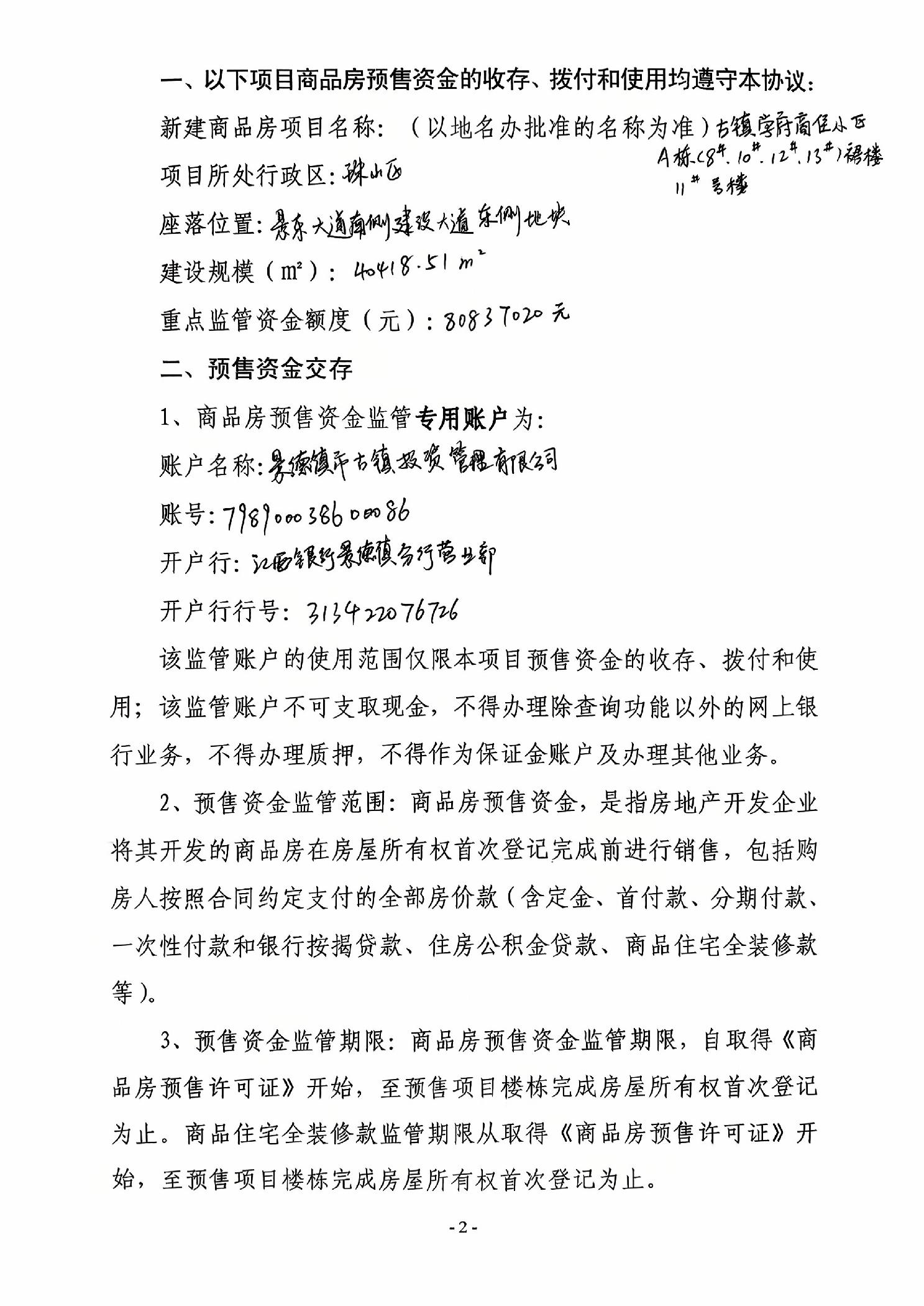 古镇学府商住小区A#.11#栋+江西银行景德镇市分行营业部新建商品房预售资金监管协议书