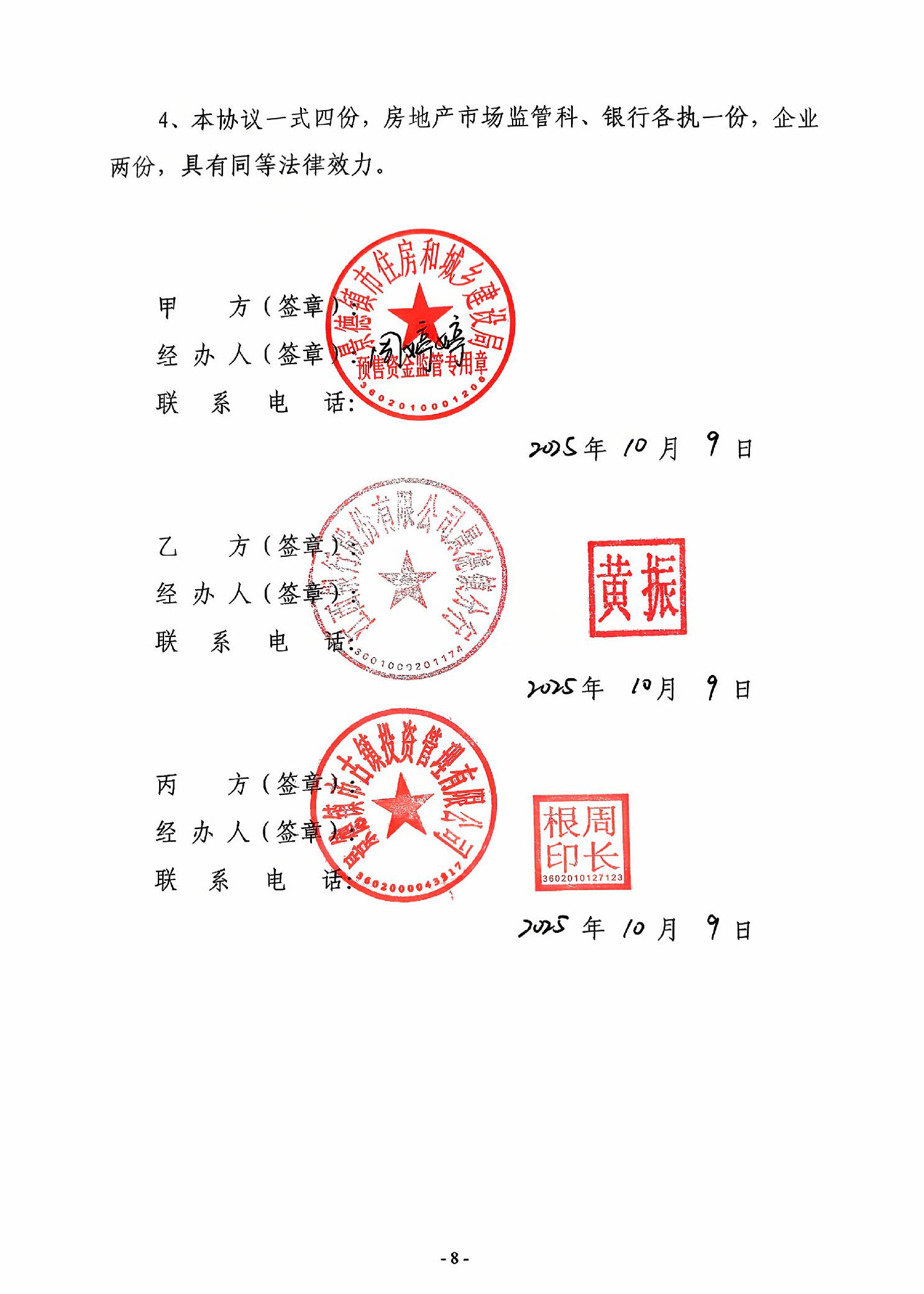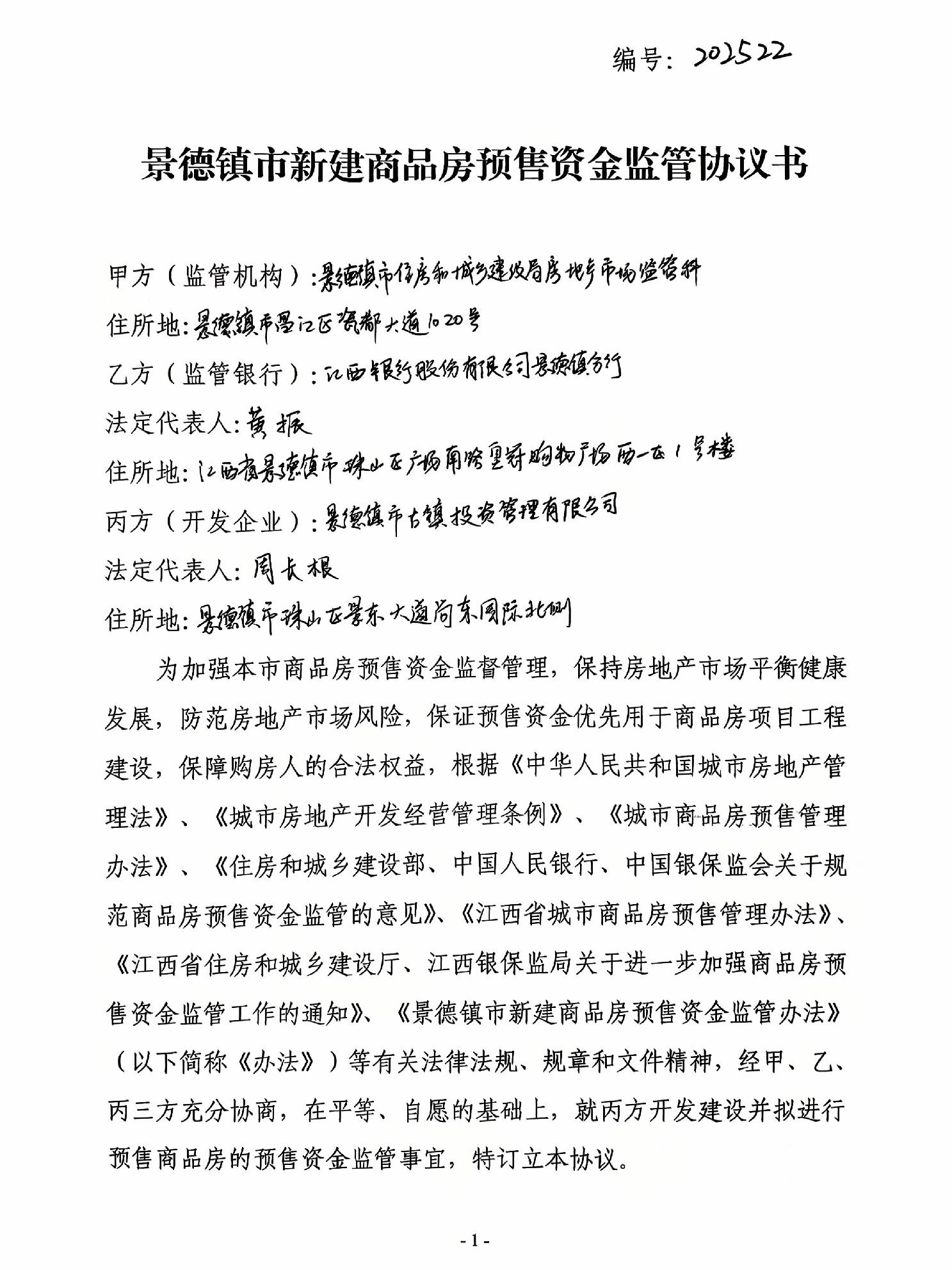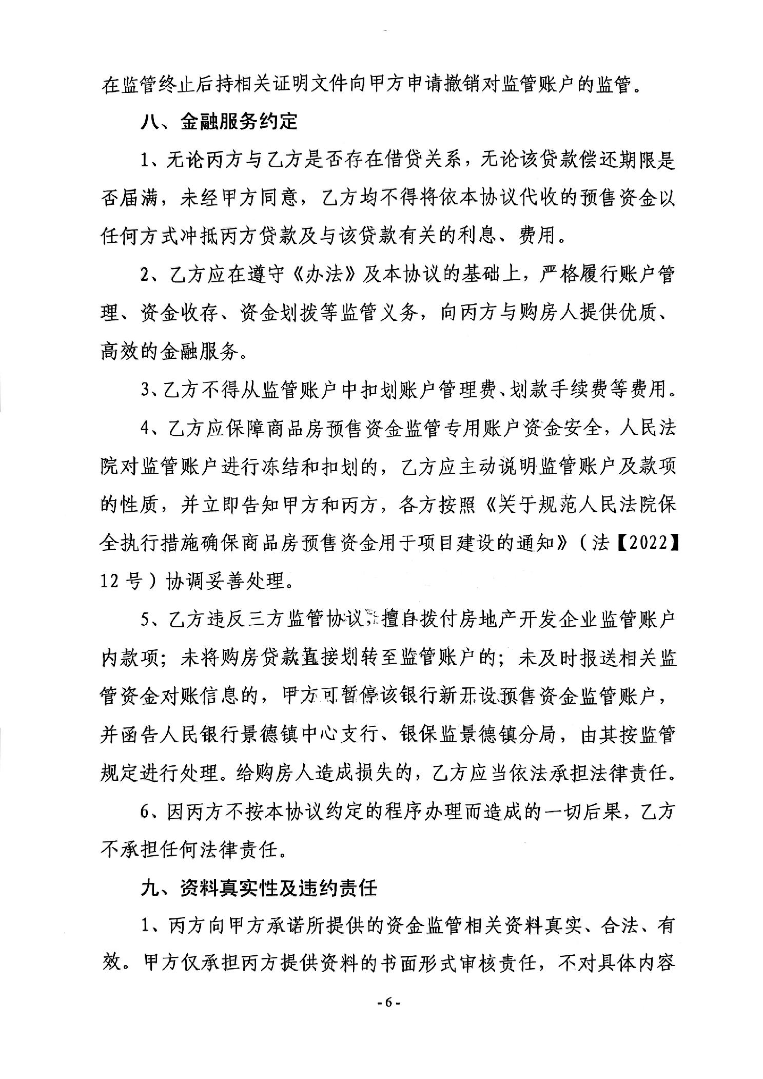 古镇学府商住小区A#.11#栋+江西银行景德镇市分行营业部新建商品房预售资金监管协议书