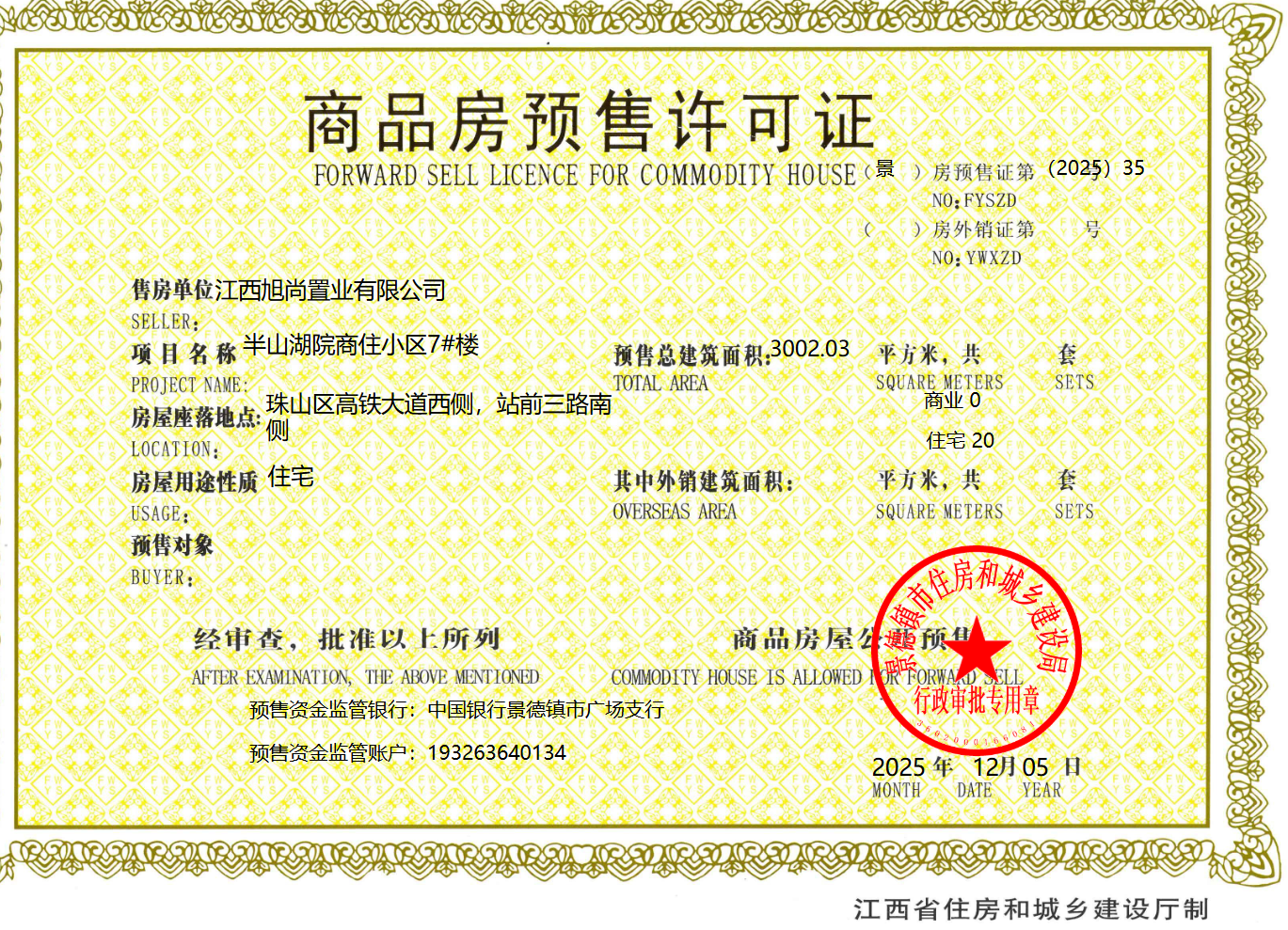 半山湖院2025年第35号预售许可