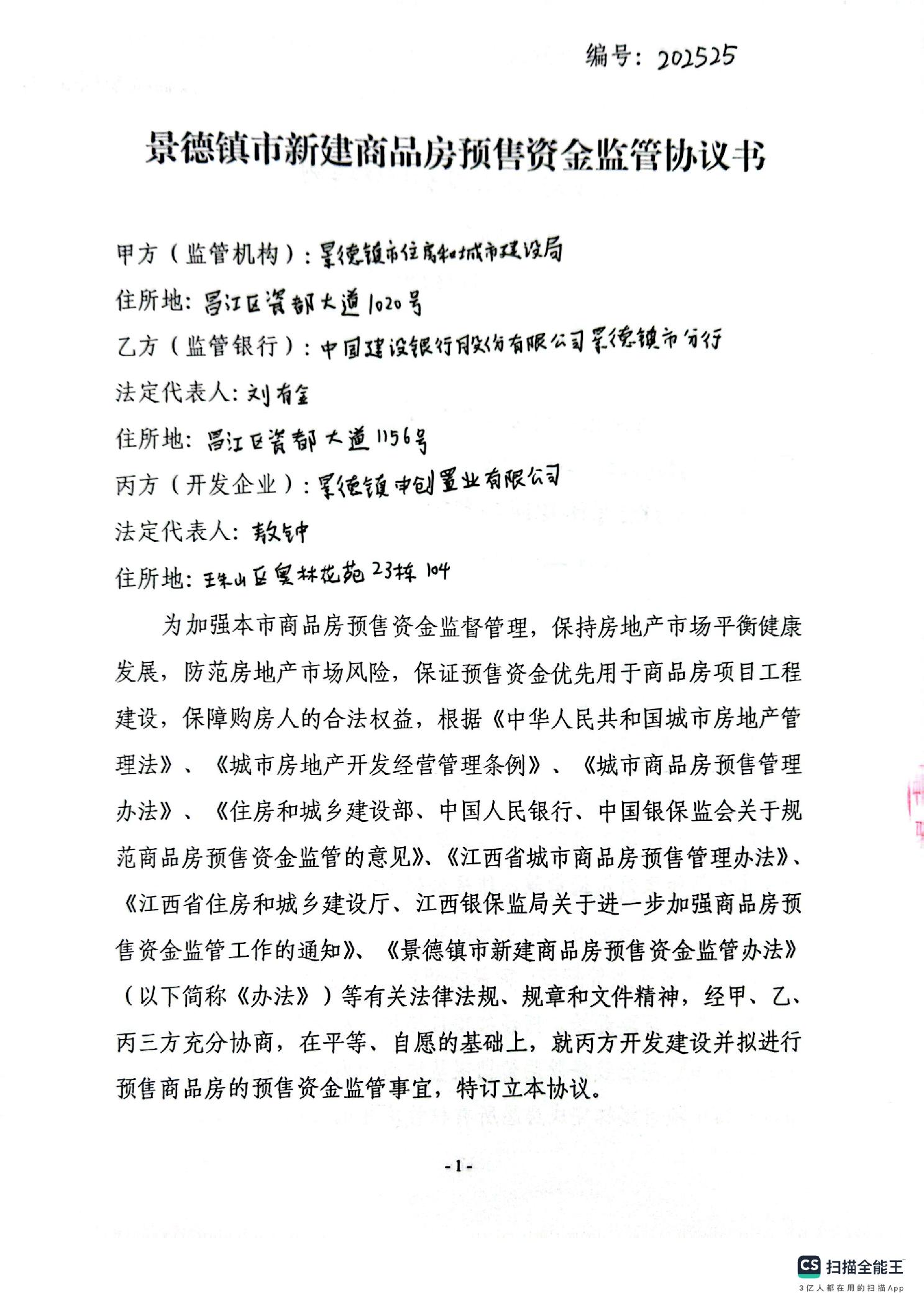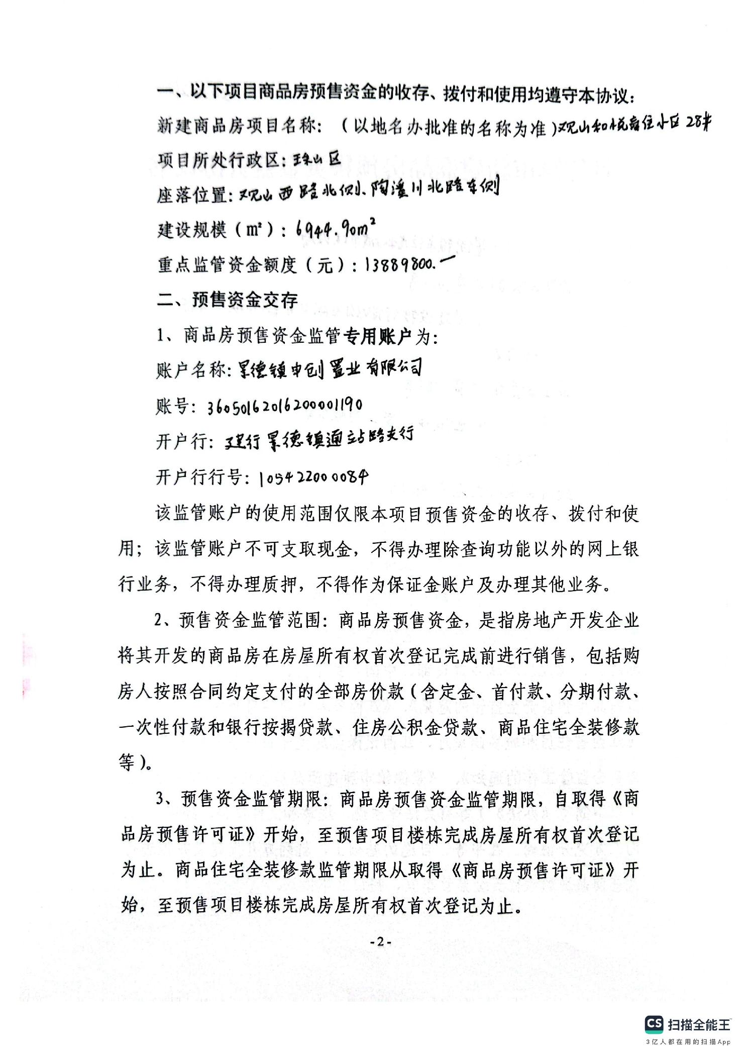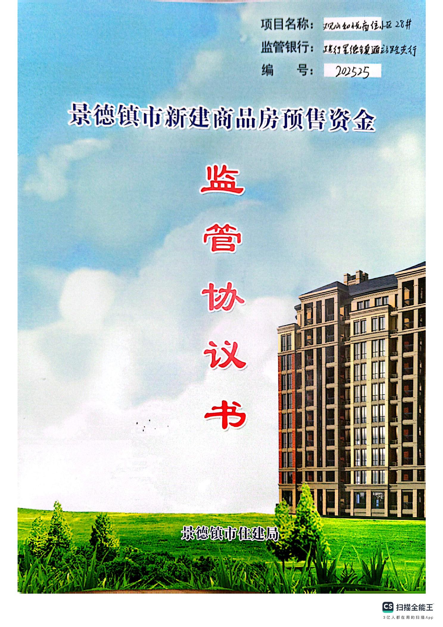 观山和悦商住小区28#栋+中国建行银行景德镇通站路支行新建商品房预售资金监管协议书