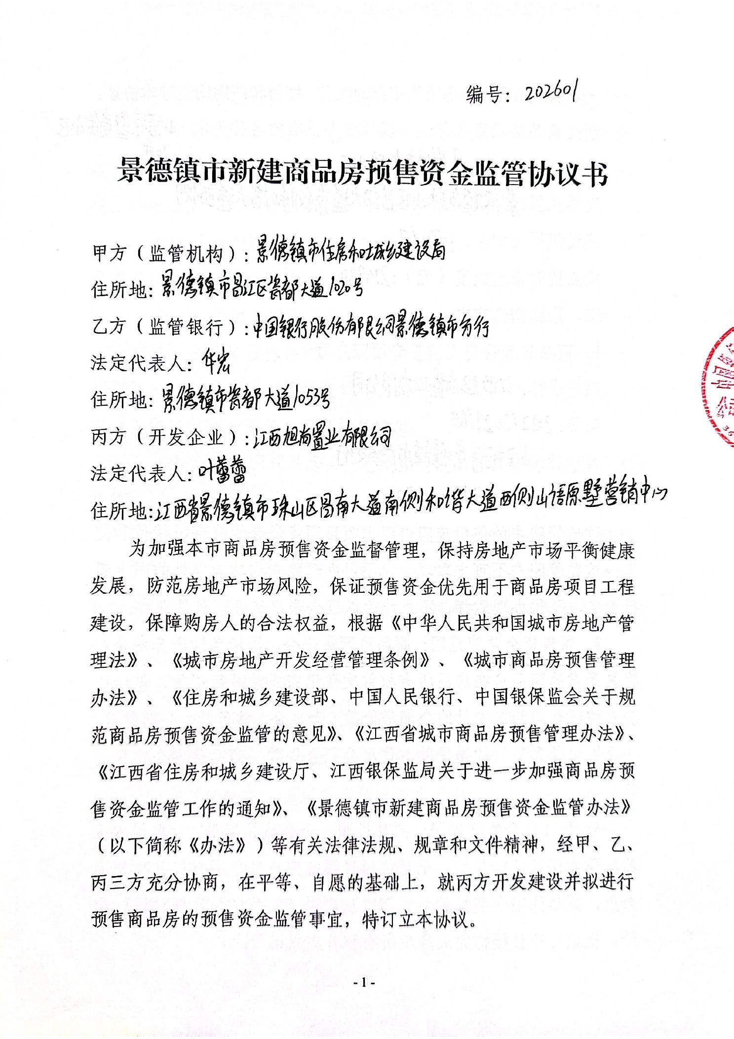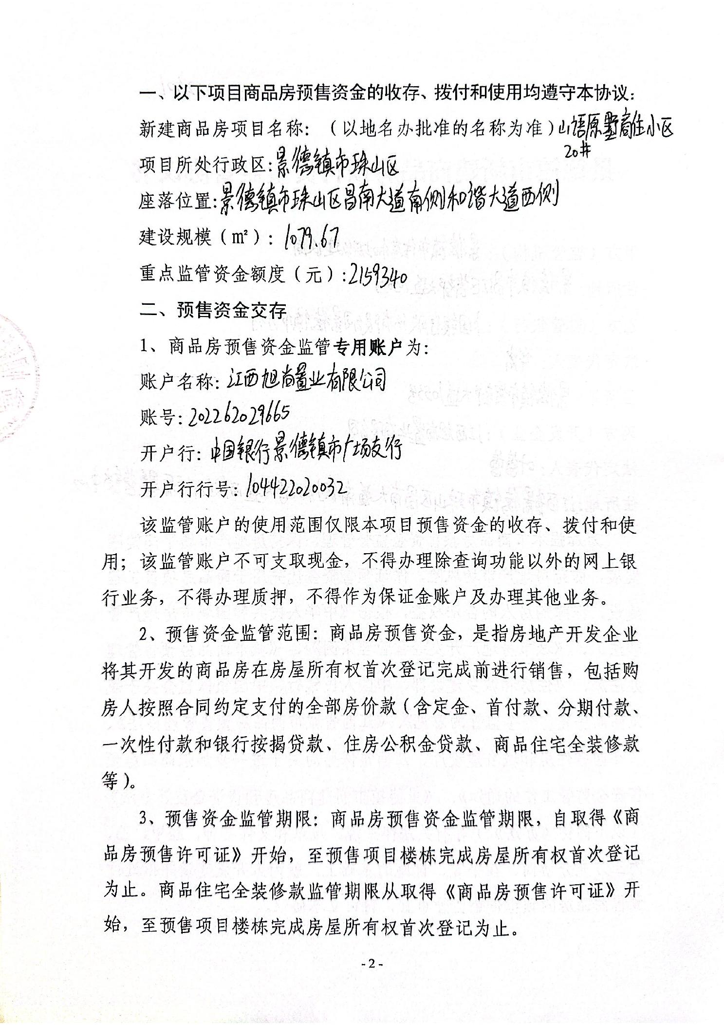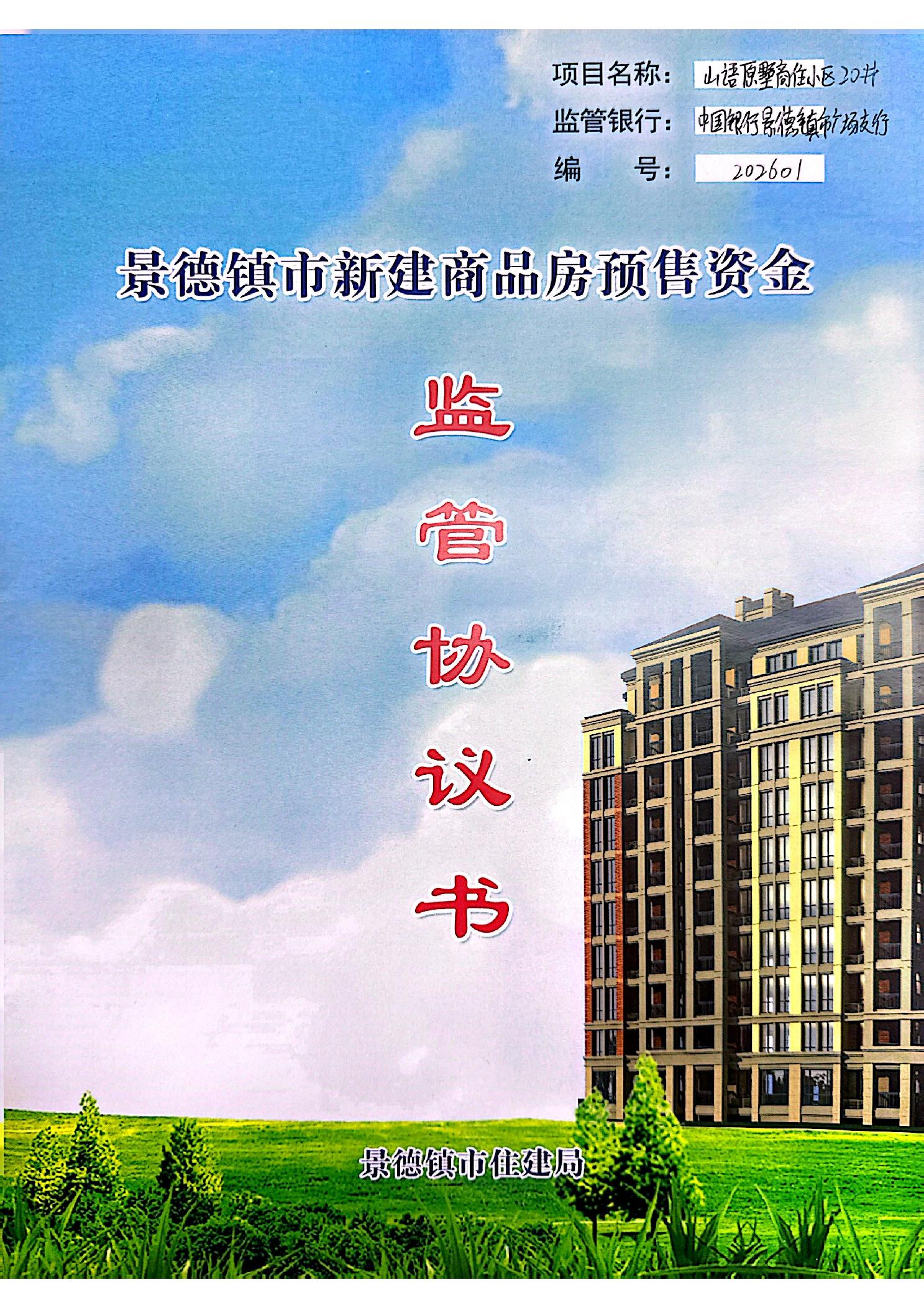 山语原墅商住小区20#楼+中国银行景德镇市分行广场支行新建商品房预售资金监管协议书