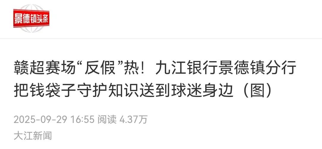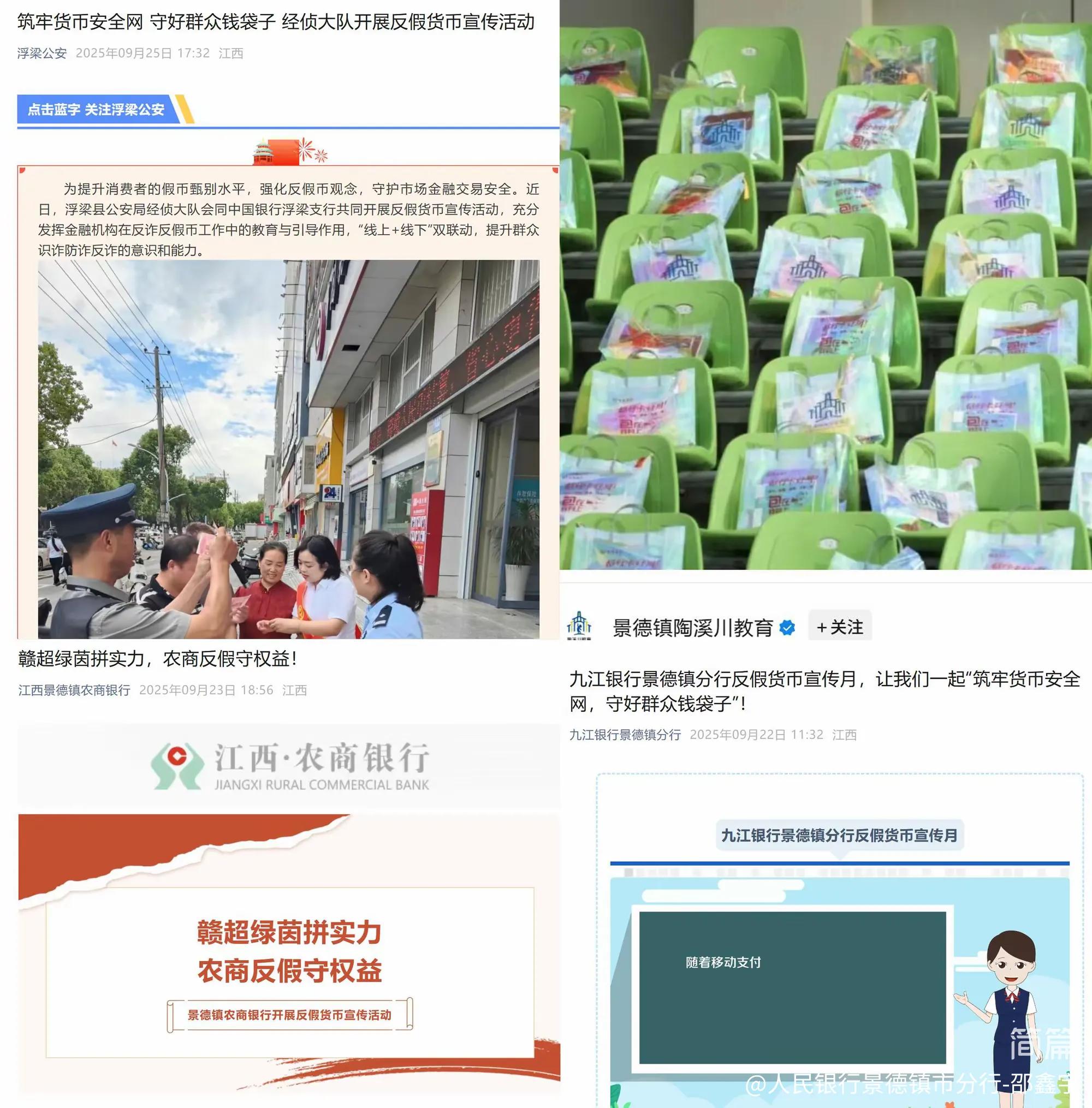 2025年9月,全国 “筑牢货币安全网,守好群众钱袋子”反假货币宣传月期间,中国人民银行景德镇市分行联合市金融服务中心,辖区内金融机构,借“赣超”赛事热潮,开展反假货币、拒收人民币违法宣传,市分行二级调研员彭小军,货币金银科及全市金融机构相关人员参加活动。现场观赛1.6万人,赛事直播覆盖14万人以上,发放各类宣传物品3.2万册。