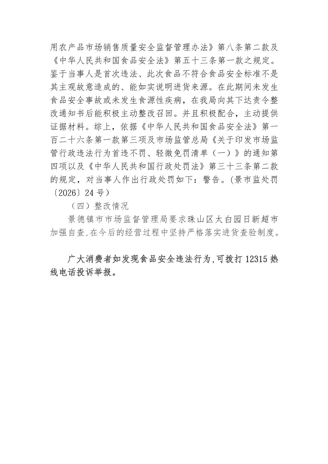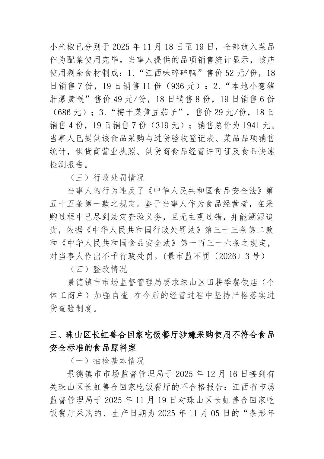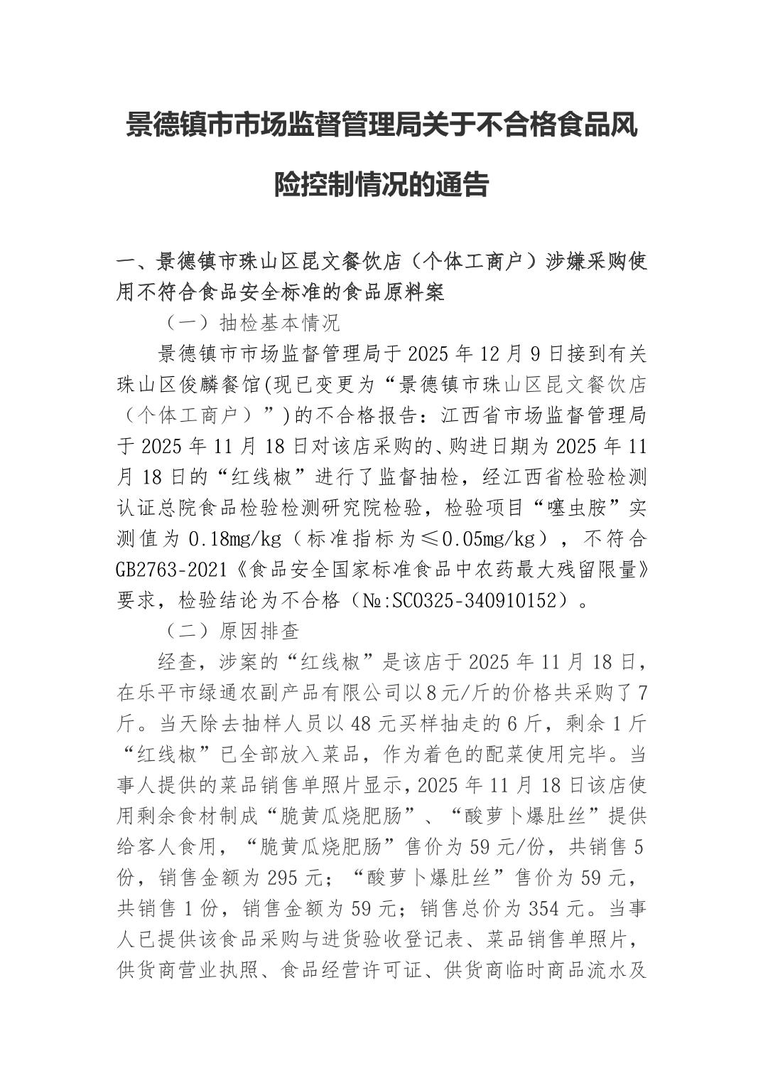景德镇市市场监督管理局关于不合格食品风险控制情况的通告(餐饮超市)