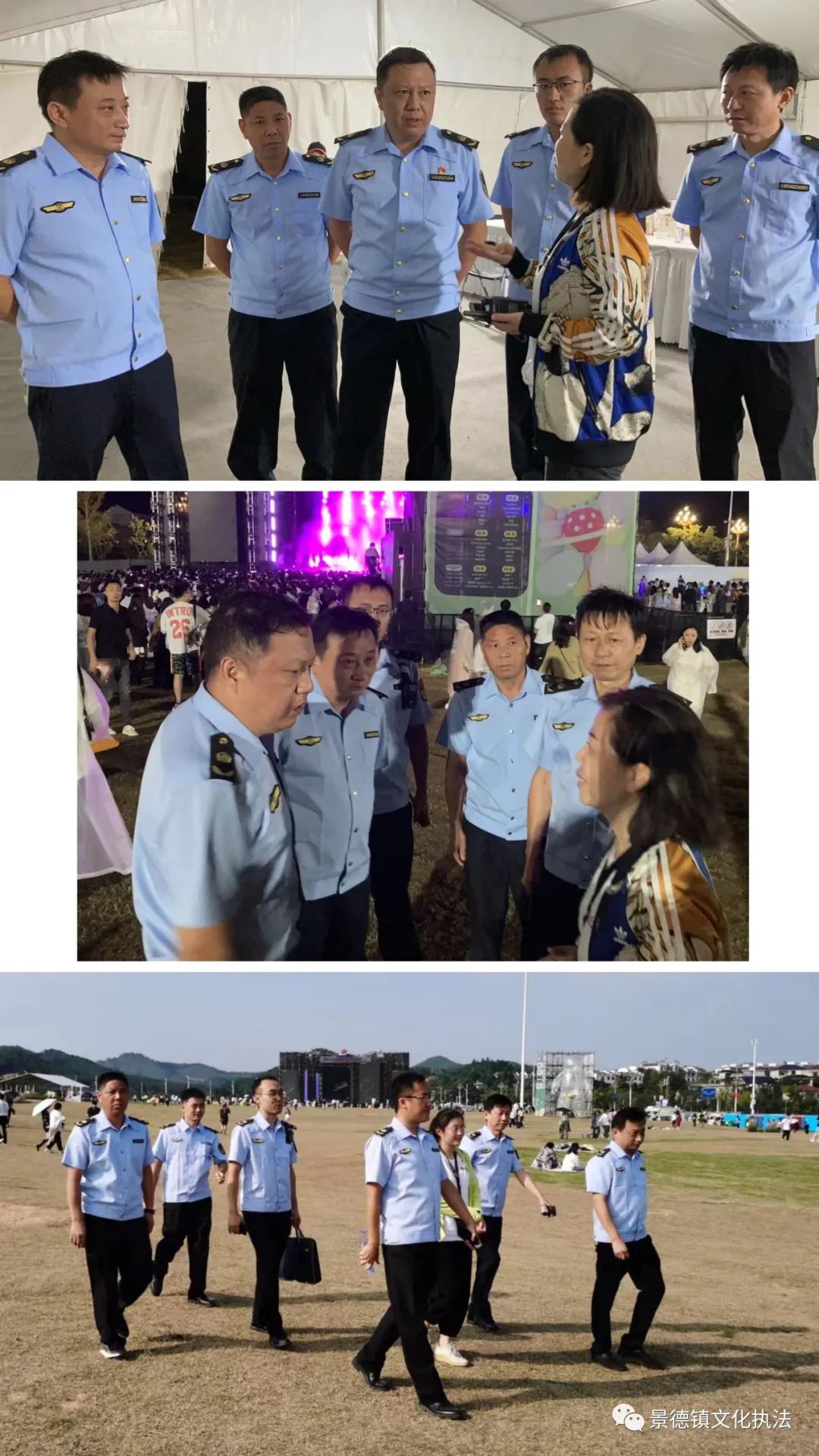 10月4日-5日,由市文化市场综合执法支队副支队长胡凯带队,与市支队、浮梁县大队执法人员共同前往2023浮梁草莓音乐节现场进行演出市场检查,音乐节现场平稳有序,执法人员要求现场负责人一是要落实好9月28日的约谈内容;二是规范演出票务经营行为,自觉遵守《营业性演出管理条例》;三是做好演出场地和内容安全的监管工作,如遇突发事件第一时间处置并上报监管部门。