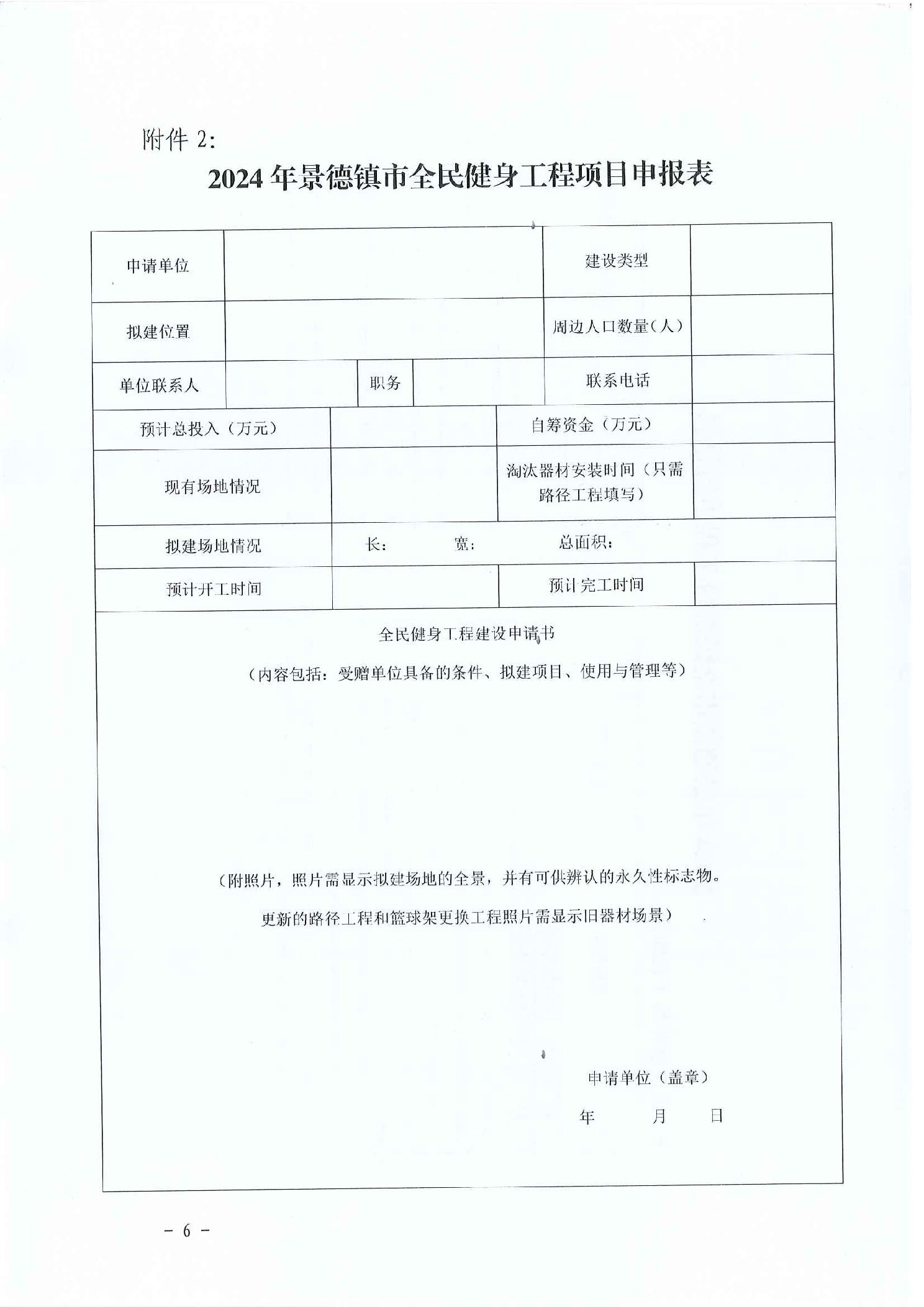 关于做好2024年景德镇市全民健身民生工程项目申报工作的通知