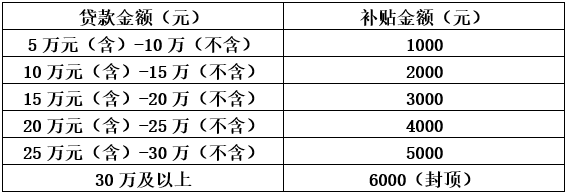 根据创业担保贷款金额,按以下标准发放补贴:享受创业担保贷款金额高于5万元(含5万元)低于10万元(不含10万元)的,给予1000元稳定创业补贴;每增加5万元贷款金额,增加稳定创业补贴1000元,最高不超过6000元。具体如下: